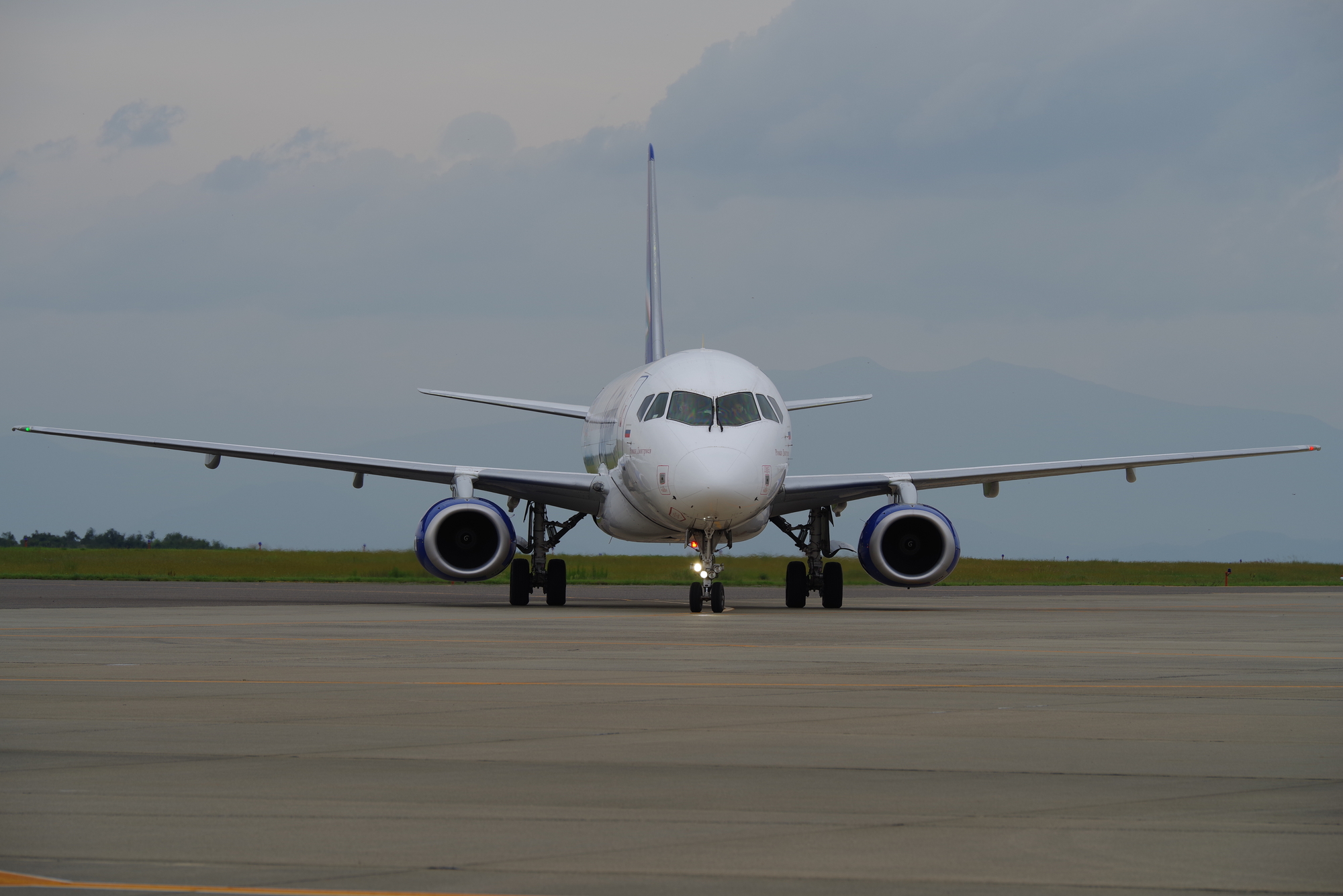 来ました! 日本では相当お目にかかれないロシアヤクーツク航空です。機材はSSJ-100