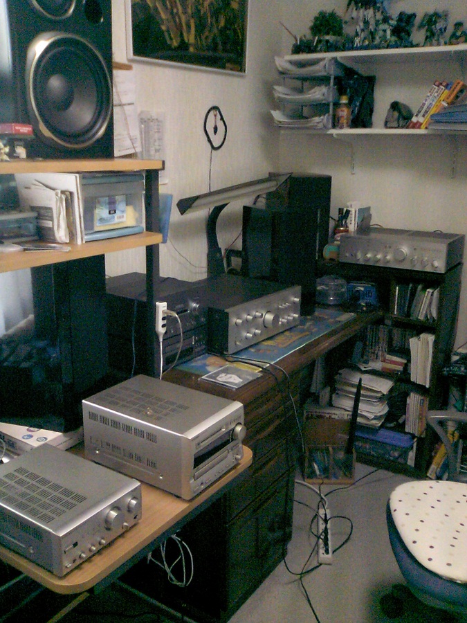 なのでいままで肥やし部屋にあった機器が次々と自室に……信じられますか、まだ写真に写っていないアンプが4つ、スピーカが4セットあるんですよ……