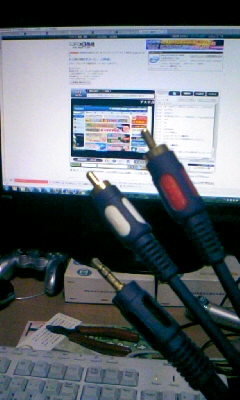 こういった、片側赤白、反対側がステレオヘッドフォン端子のケーブルは、ポータブルプレイヤと接続したりといろいろ使えます。もっておいて損はないですよ。