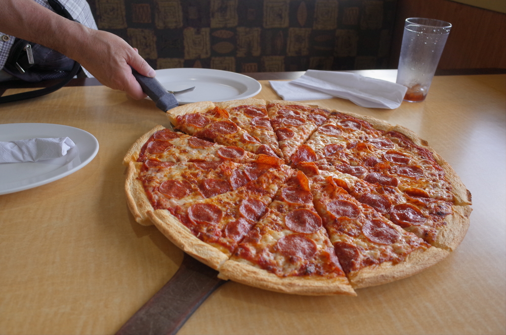 ハガニアモール近くのピザ屋でニューヨークピザ? にチャレンジ。