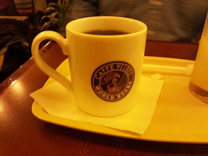 入り口に書いてあったお値段表を見ると180円のホットコーヒが。東京の高い物価につかれていた自分としてはつられて入ってしまいました。