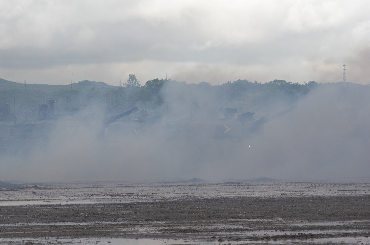 訓練展示は大迫力。演習弾とはいえ、総合火力演習以来の地雷除去である。