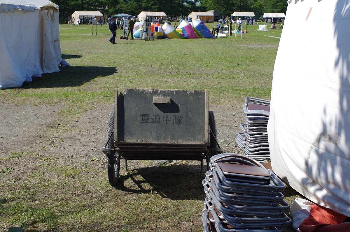 自衛隊の汎用機動輸送はリヤカーですよねやっぱ。写真撮ってたら隊員さんに「たこ焼き売れ残っちゃってるので買ってください!!」と言われついつい食いすぎるのでした。