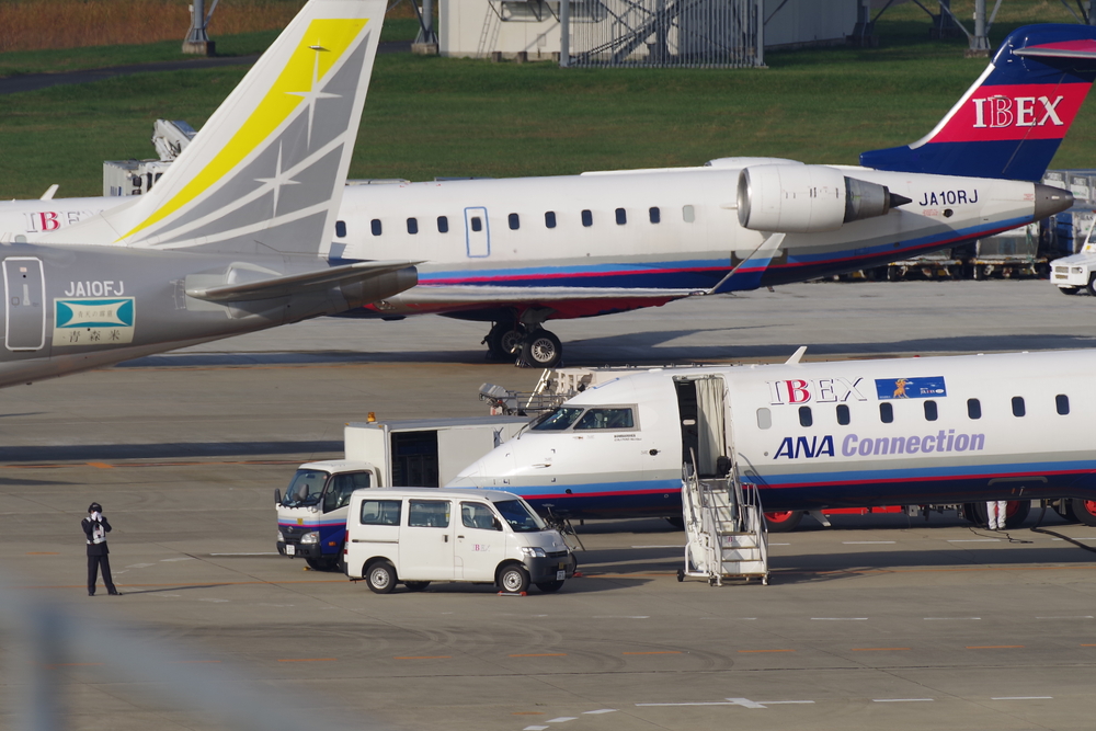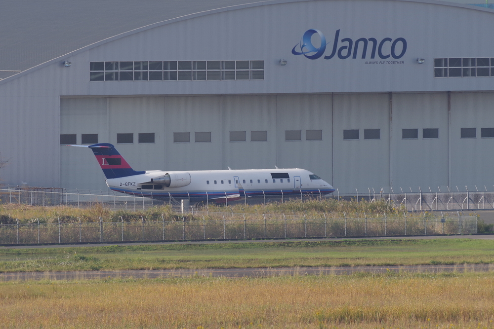 ふとJamuco側を見ると社名が塗りつぶされた旧IBEX CRJ200です。後日空港に来たときは居なくなっていたので、この後すぐ旅立ってしまったようです……