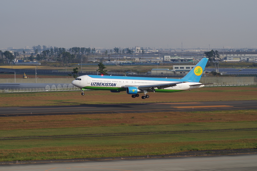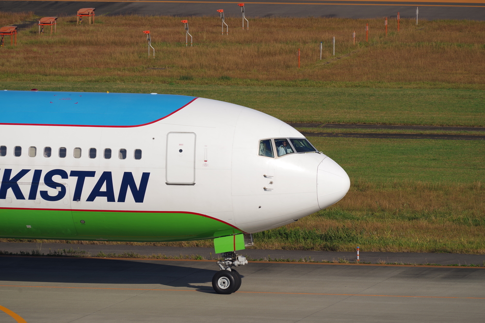 さて、今回はデルタ747の前にいらっしゃった数年に一度というウズベク航空のチャーター機です。