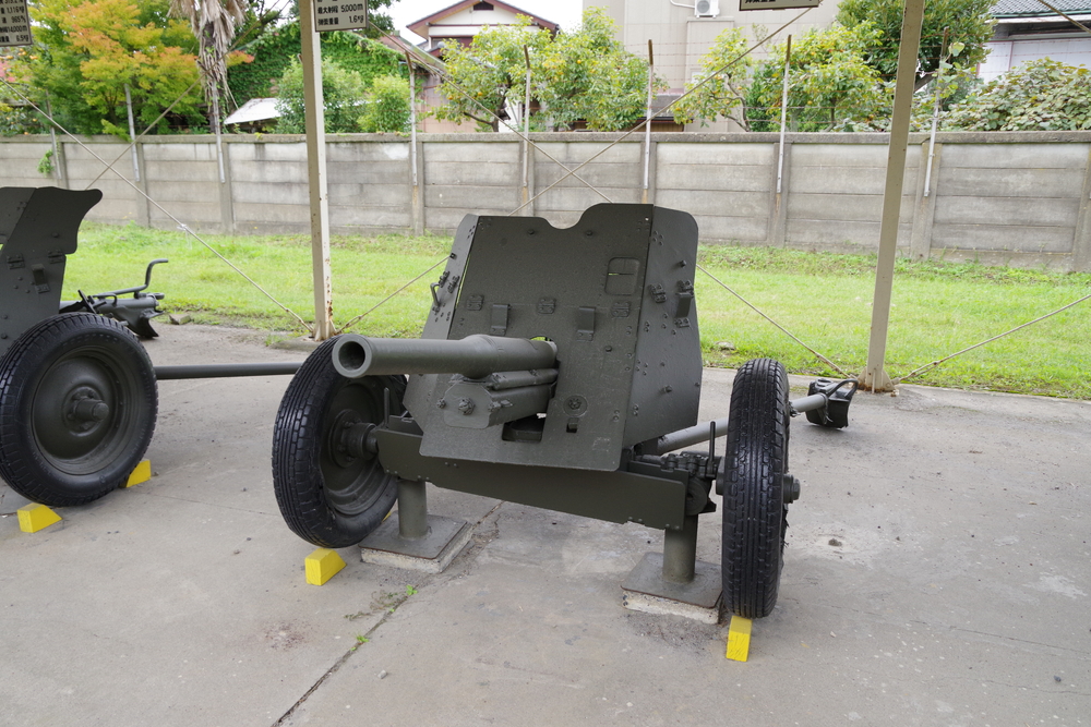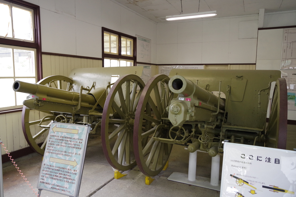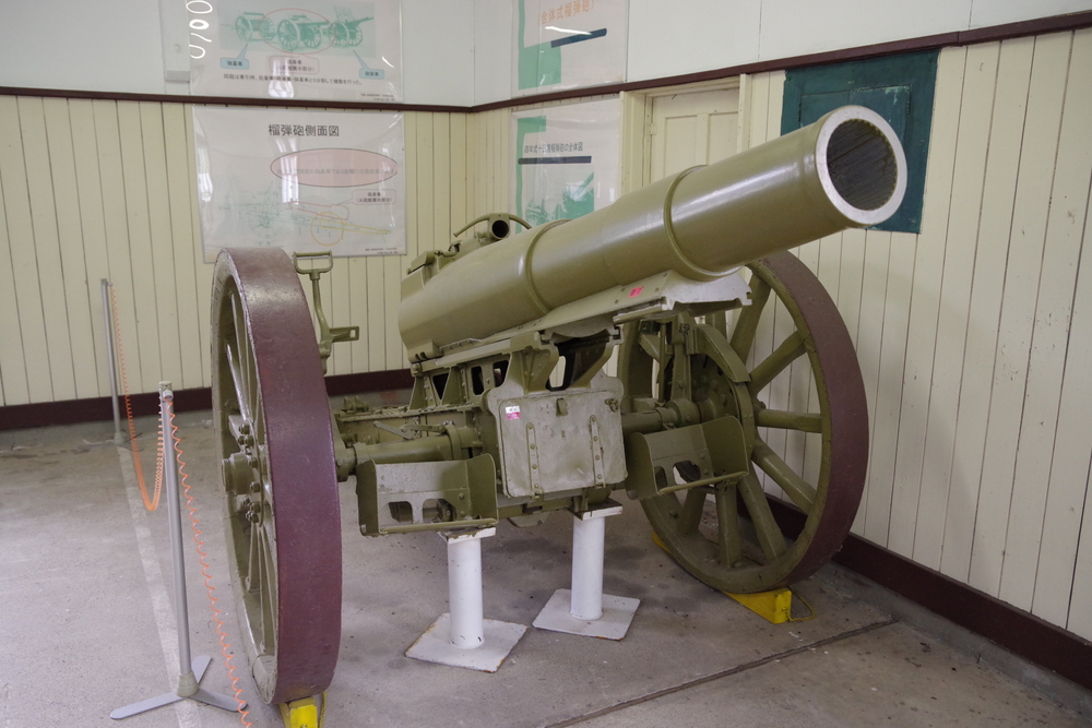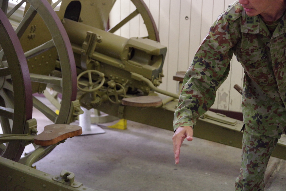 まずは火砲館で旧軍の野砲等を見学します。米軍の野砲等と比べると、どうしても明治からの改造品や、歩兵による運用・運搬前提の火砲だなぁと感じます。でも大正陸軍は日露の経験を生かして火力重視ドクトリンなので、歩兵に大量に火砲を運ばせて弾幕という考え方してたんだなぁと実感します。
