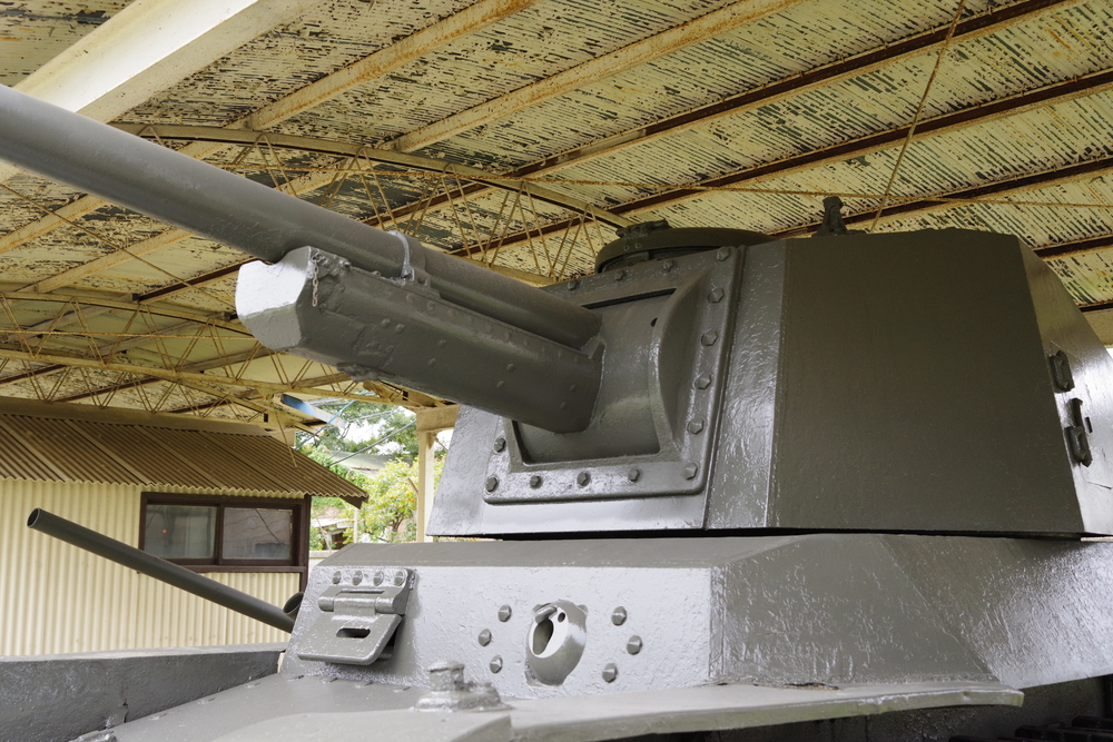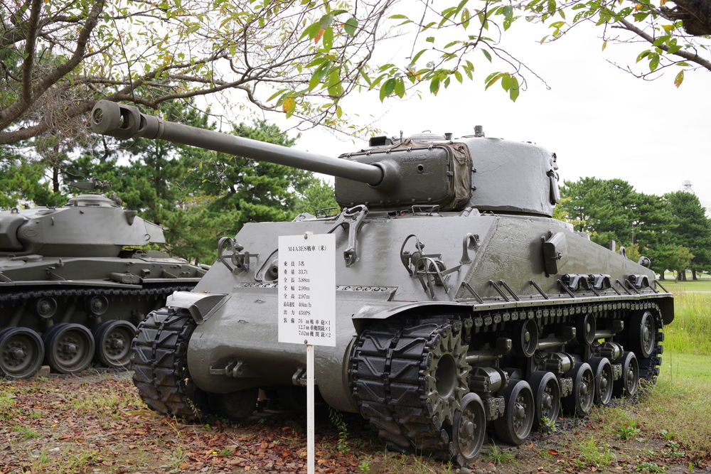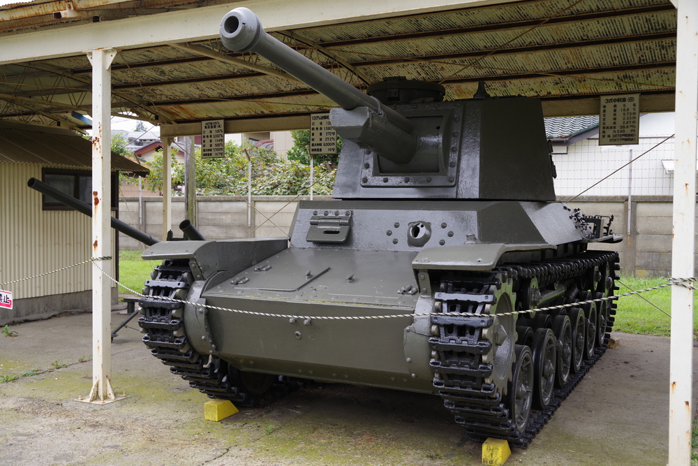 そして火砲館を出ると待ってました三式中戦車チヌのご登場です。アニメ他で色々有名になりましたが、ミリオタとしては手放しに名戦車! と呼べる代物ではなく「ないないづくしの中、なんとか作った戦車」というイメージが強いです。