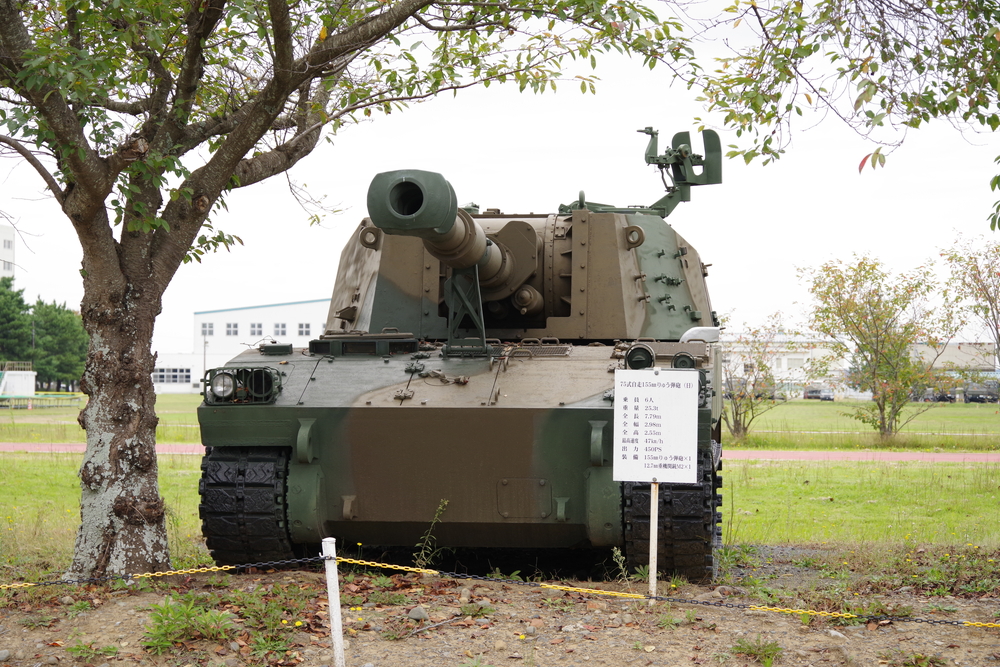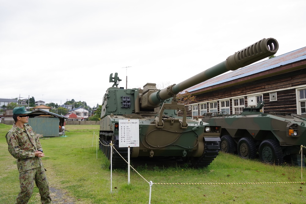 その後有名な屋外展示を解説付きで見て行きます。今回のガイドしてくださる隊員さんは自走りゅう弾砲の開発担当だったそうで、戦車見に来る人が大半なのに、旧軍の戦車はソコソコに対空自走砲やいろんな意味でレアな105mm自走りゅう弾砲で熱く語っていただいたり等々。