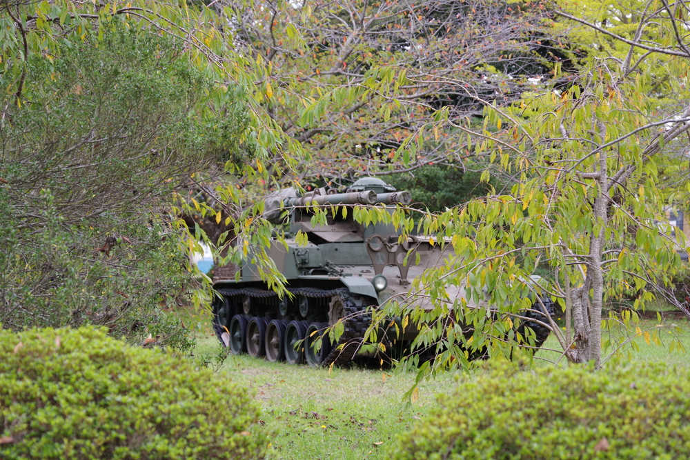 噂の旧軍匂あふれる60式を見てみます。木や草越しだとこのサイズの車両は分かりづらいですね確かに。
