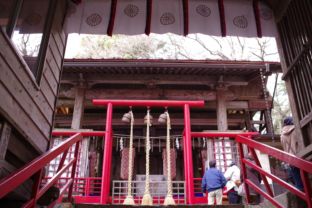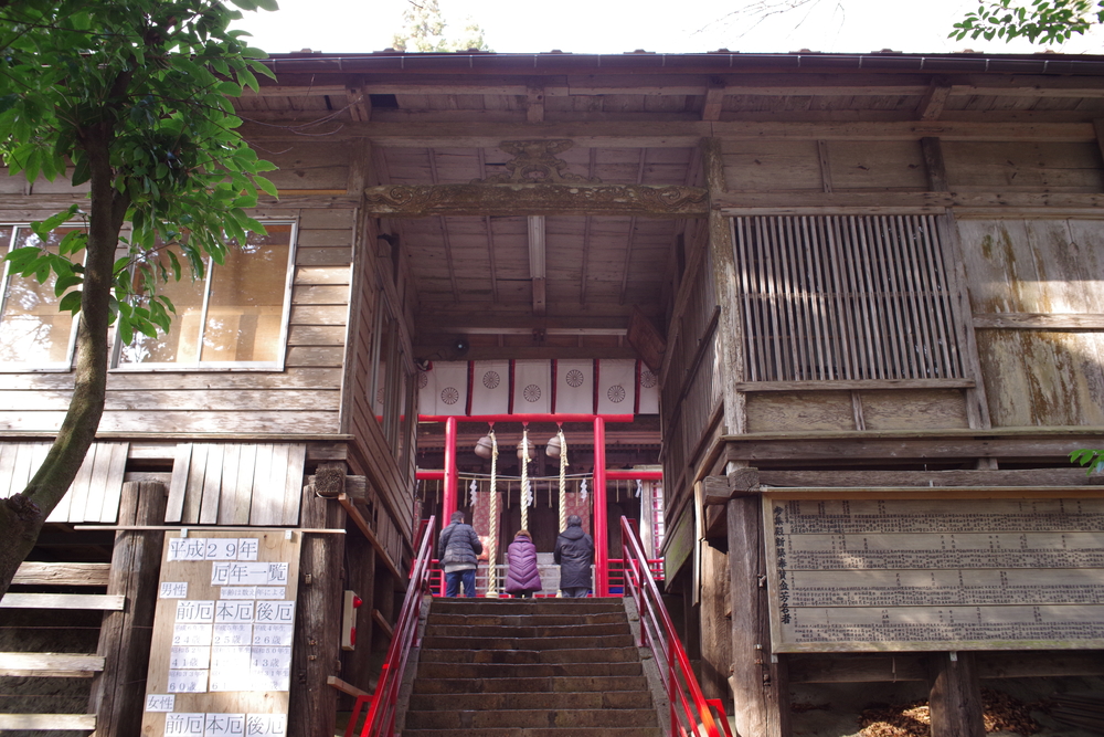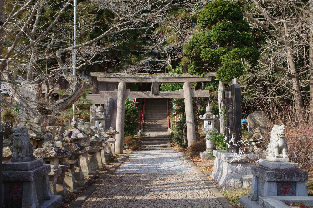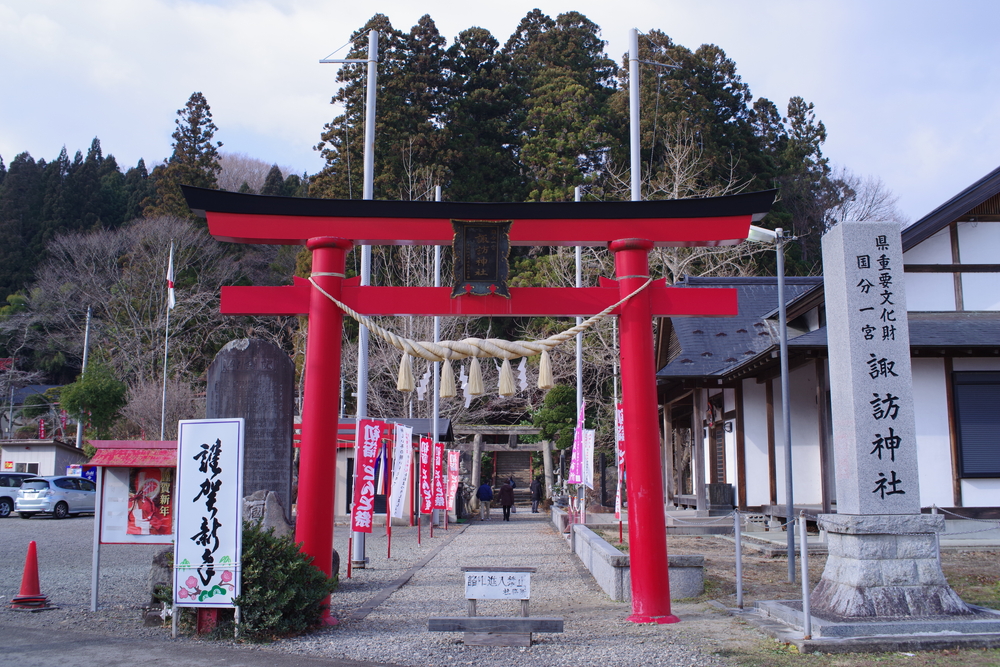 ではまず諏訪神社へ向かいましょう。駐車場はありますので車でOKです。