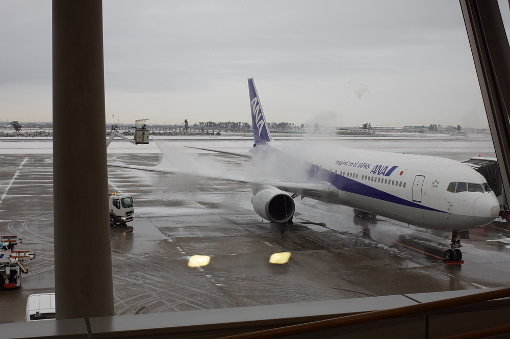 では実際に行って見ましょう。雪の仙台空港からアラホラサッサー