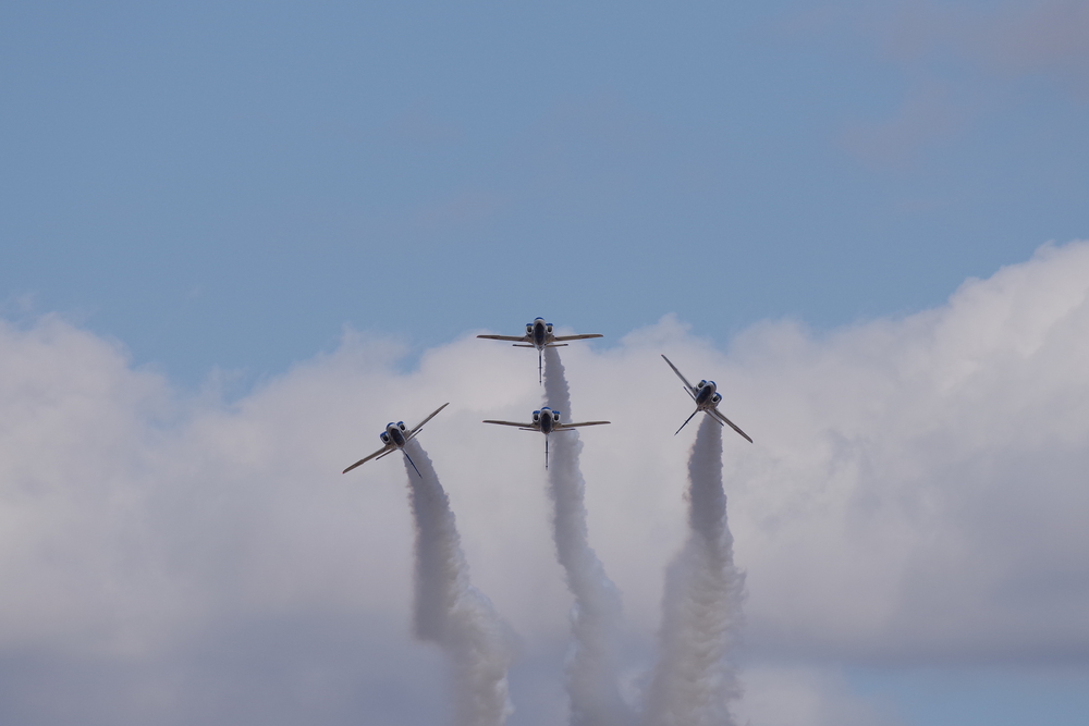 演技終了後の着陸や、ローパスでかっとんで来てくれる時は200mm(35mm換算400mm)でもでかい。着陸時に限って言えば☆70-200mmF2.8でも撮影できると思う。でも全般的に機体が遠すぎるため、レンズの切り替えはあまりオススメできない。