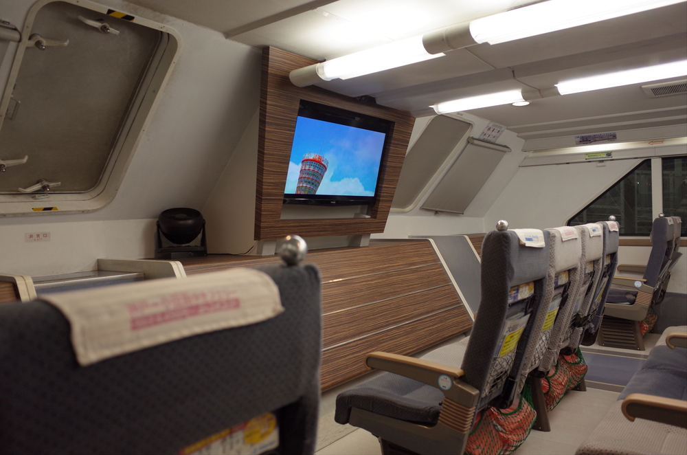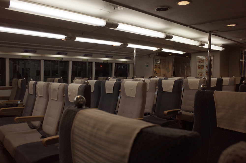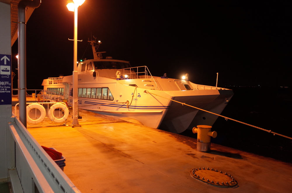 利用客ががーらがら。正面のTVには神戸の宣伝が10分ぐらいでループするヒマ仕様のため、神戸の夜景が見えなくなったらとっととぐーぐー寝ることにします。
