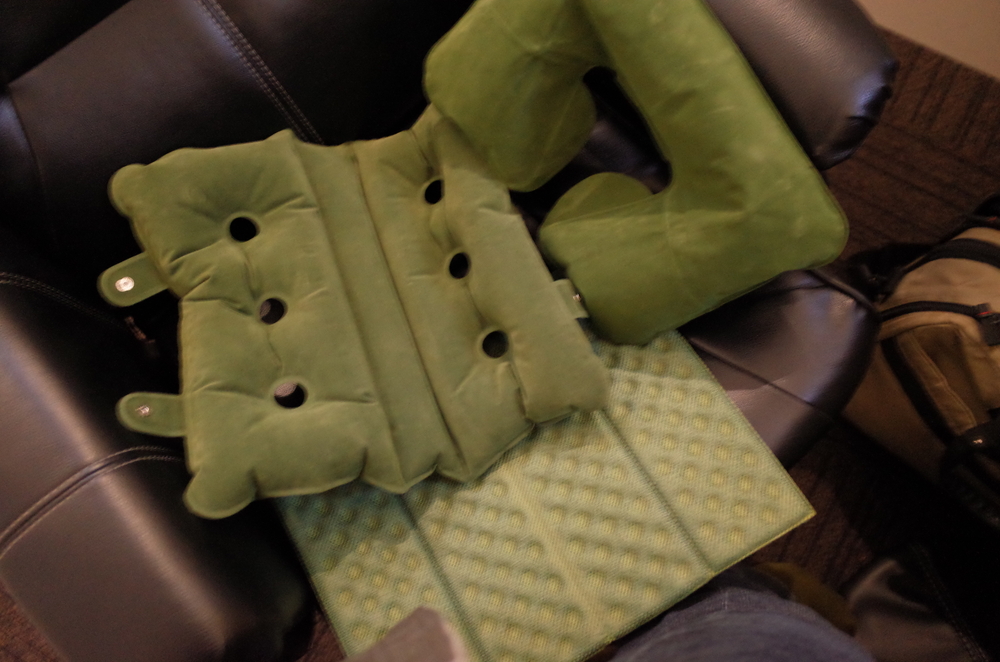 自衛隊基地で買うべき三種の神器と共にお休みなさい。なお、このイスタイプ、すんごいムレるので、可能な限り薄着になり、ケツを浮かせて寝るようにしましょう。