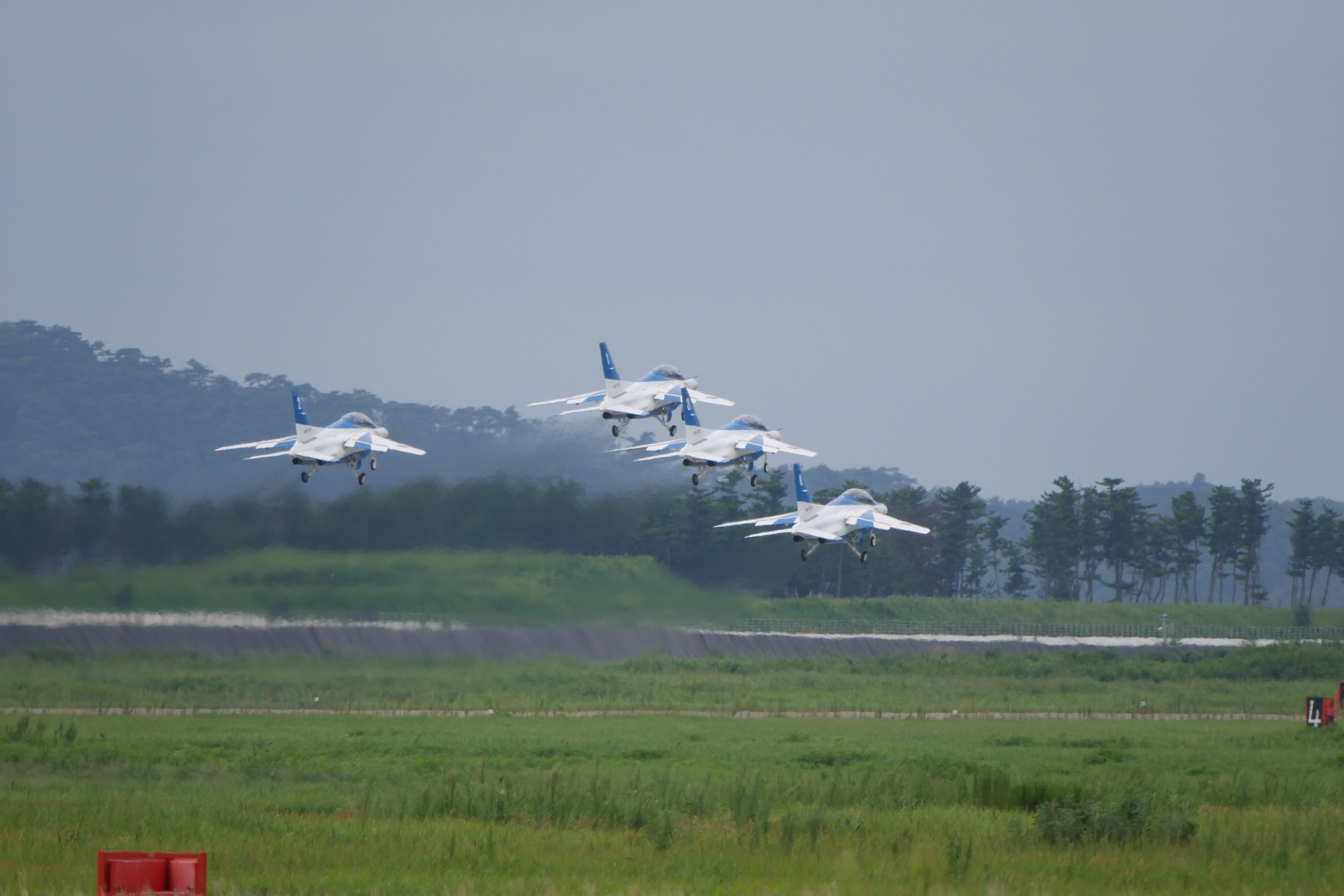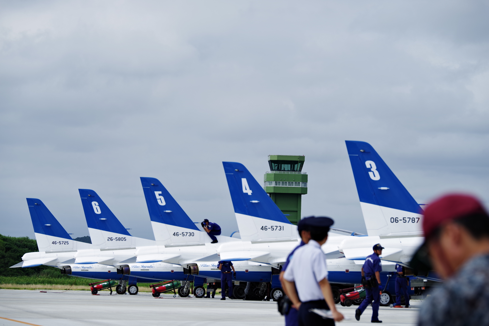 ブルーが駐機してパイロットが降りてくるポイントはすさまじい倍率なので、北側格納庫あたりが空いています。