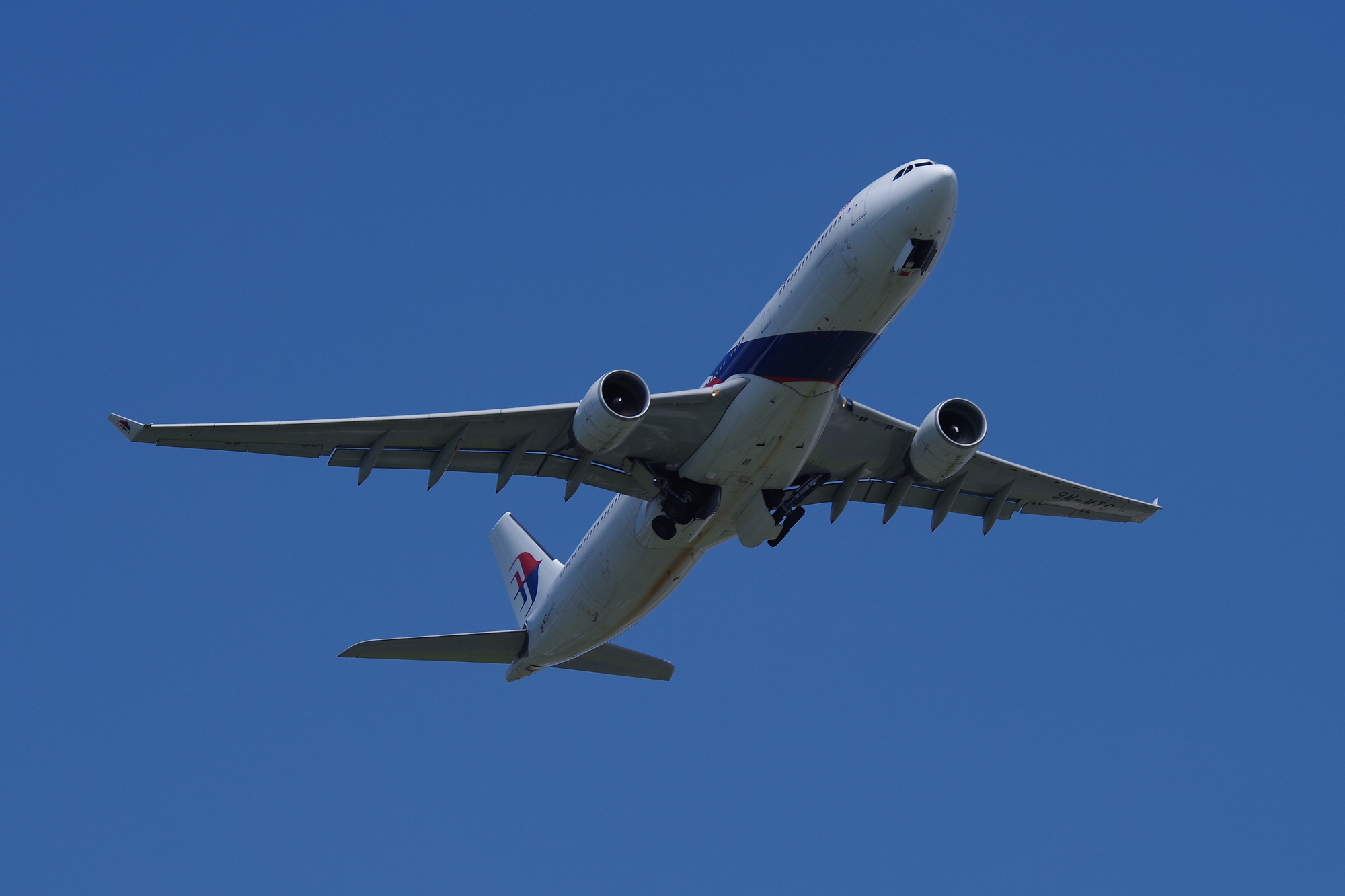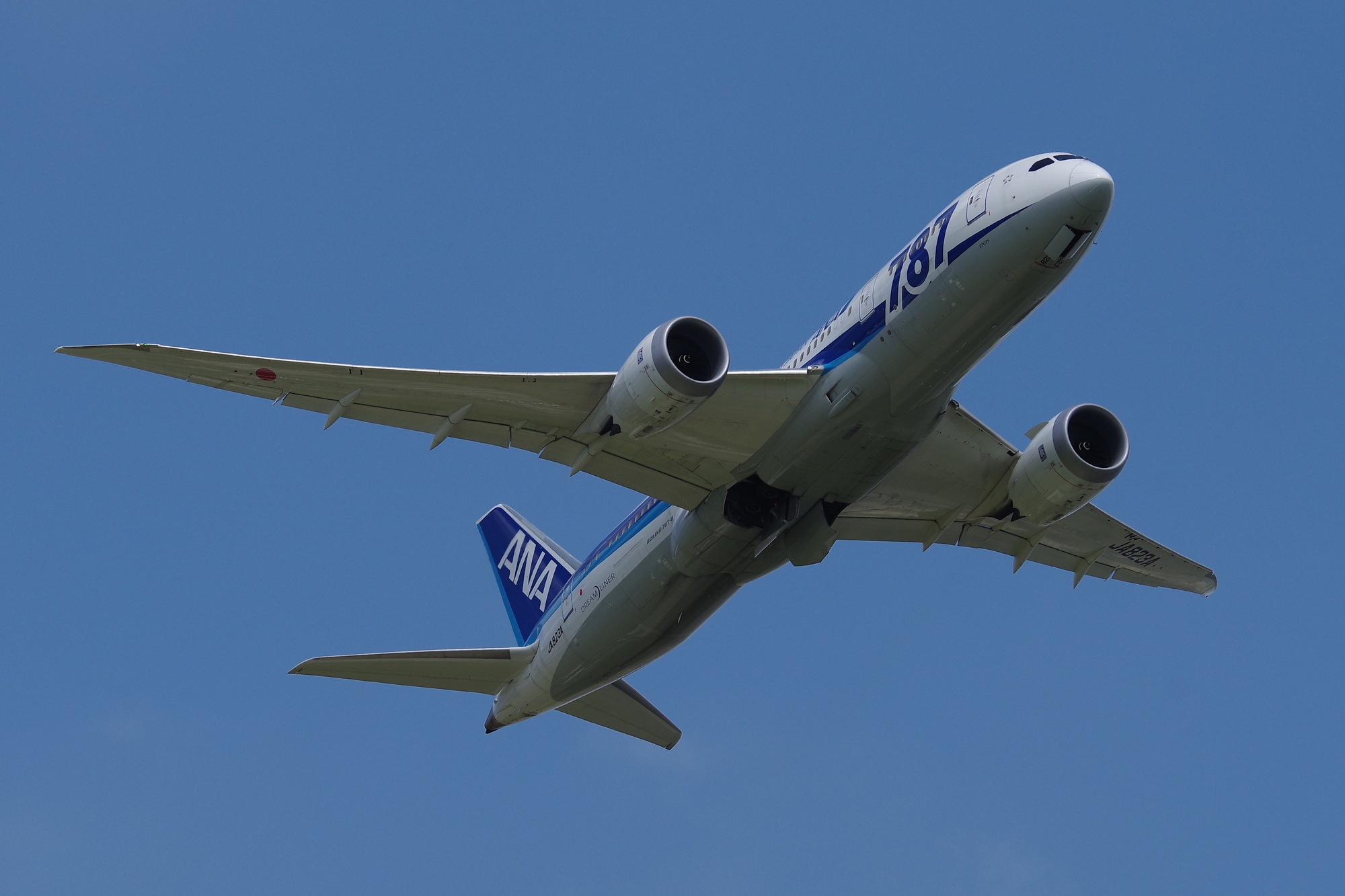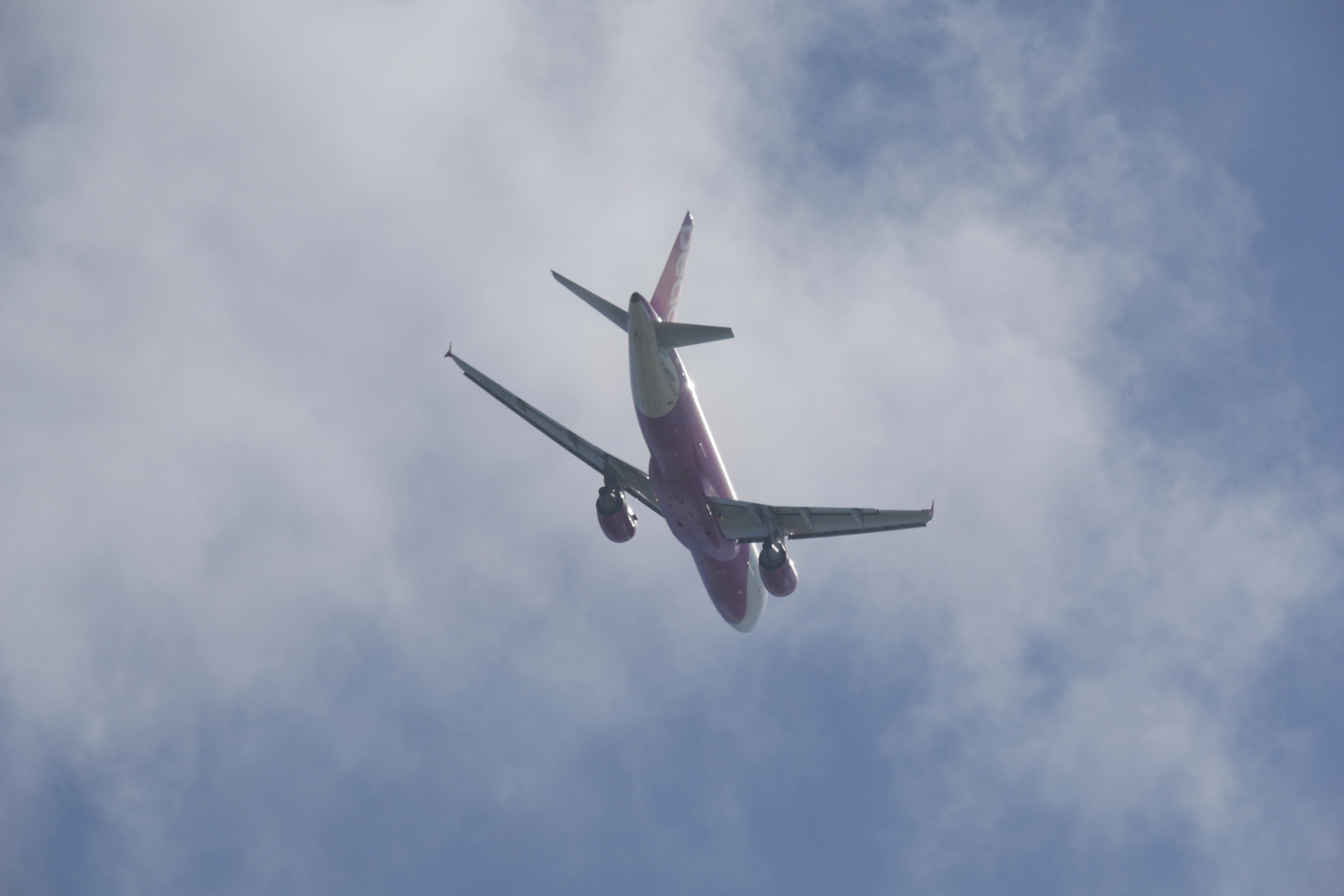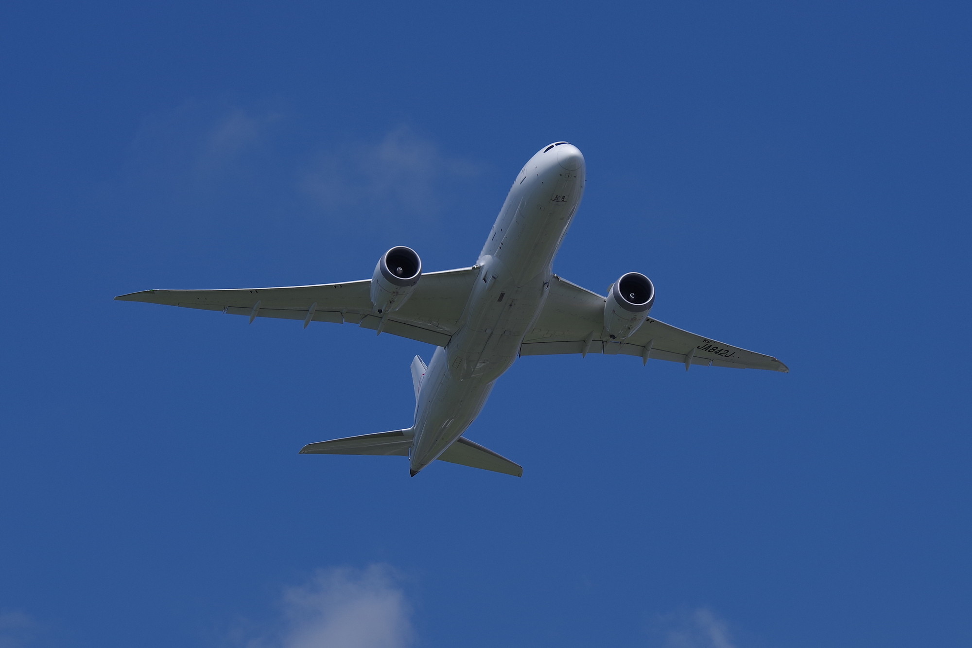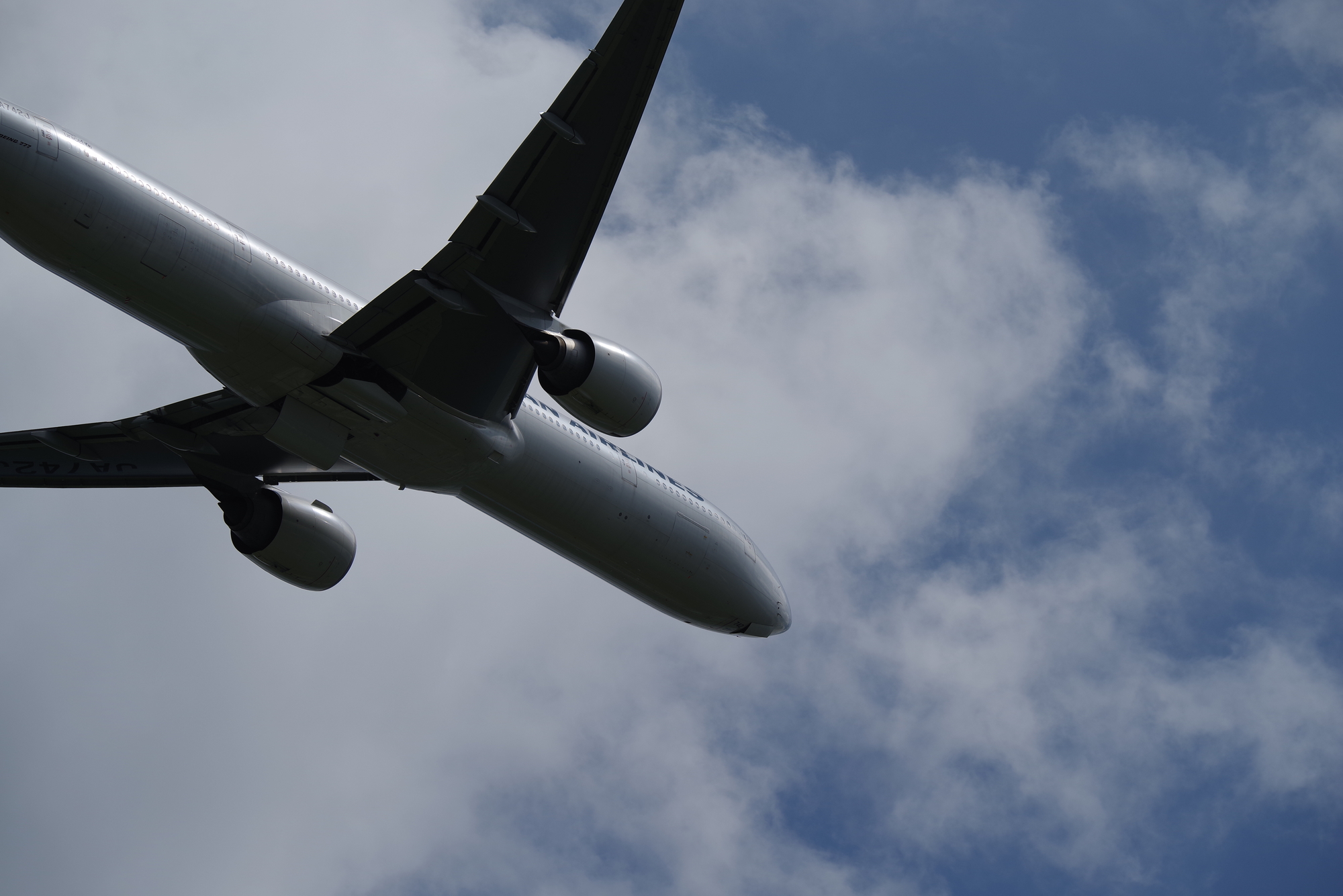 離陸の早い小型や、近距離路線などは軒並み素早く高度をとってしまうため、お腹ばかり撮影することに。しかも持っていったK-1+70-200mmではぜんぜんレンジが足りない。APS-Cのクロップを常時つかいっぱです。