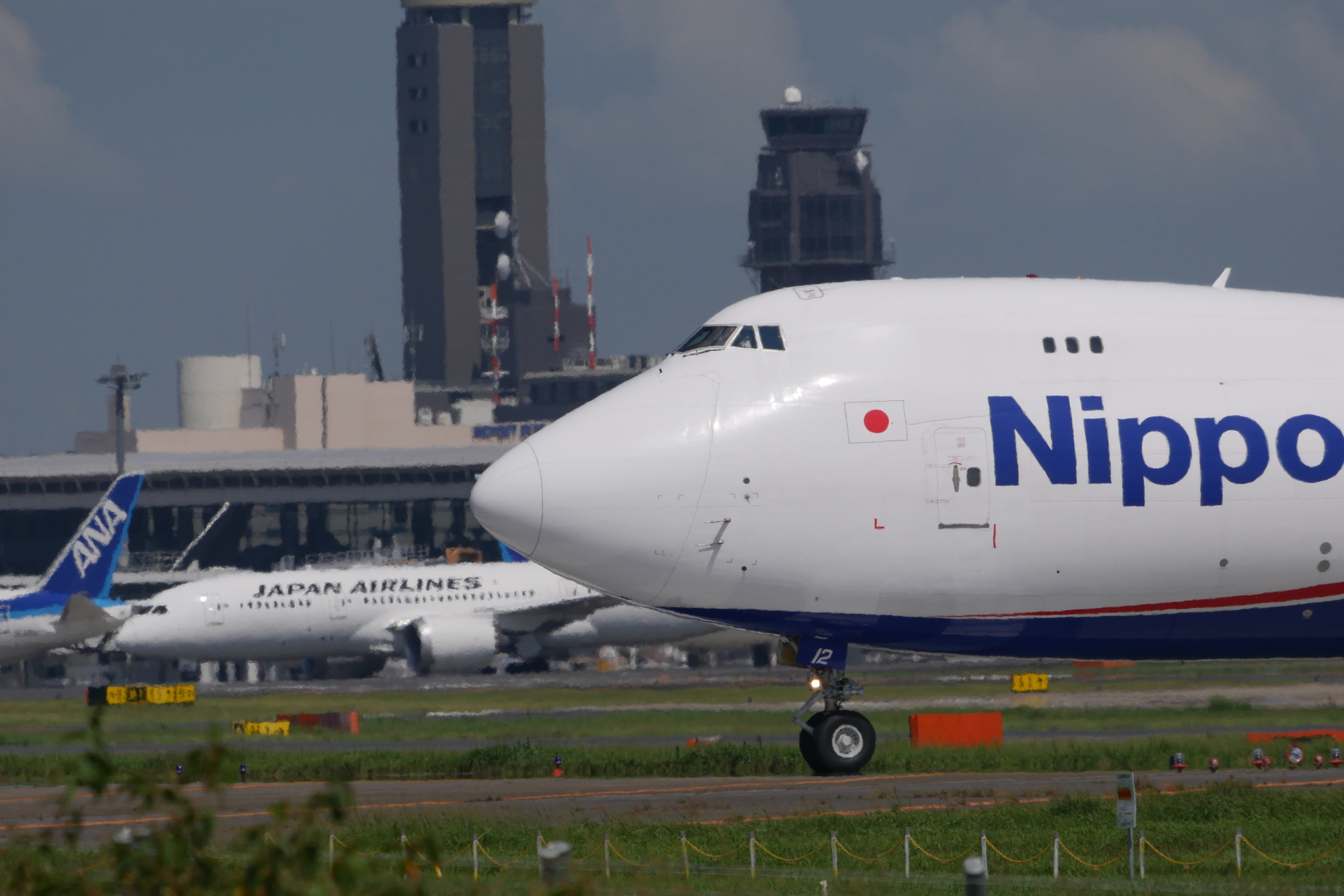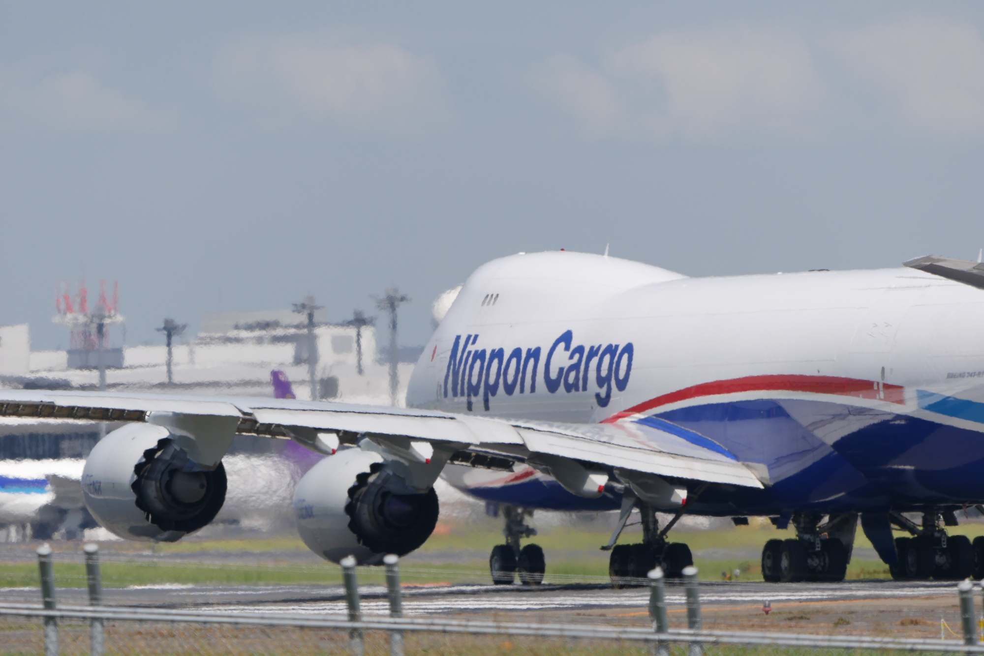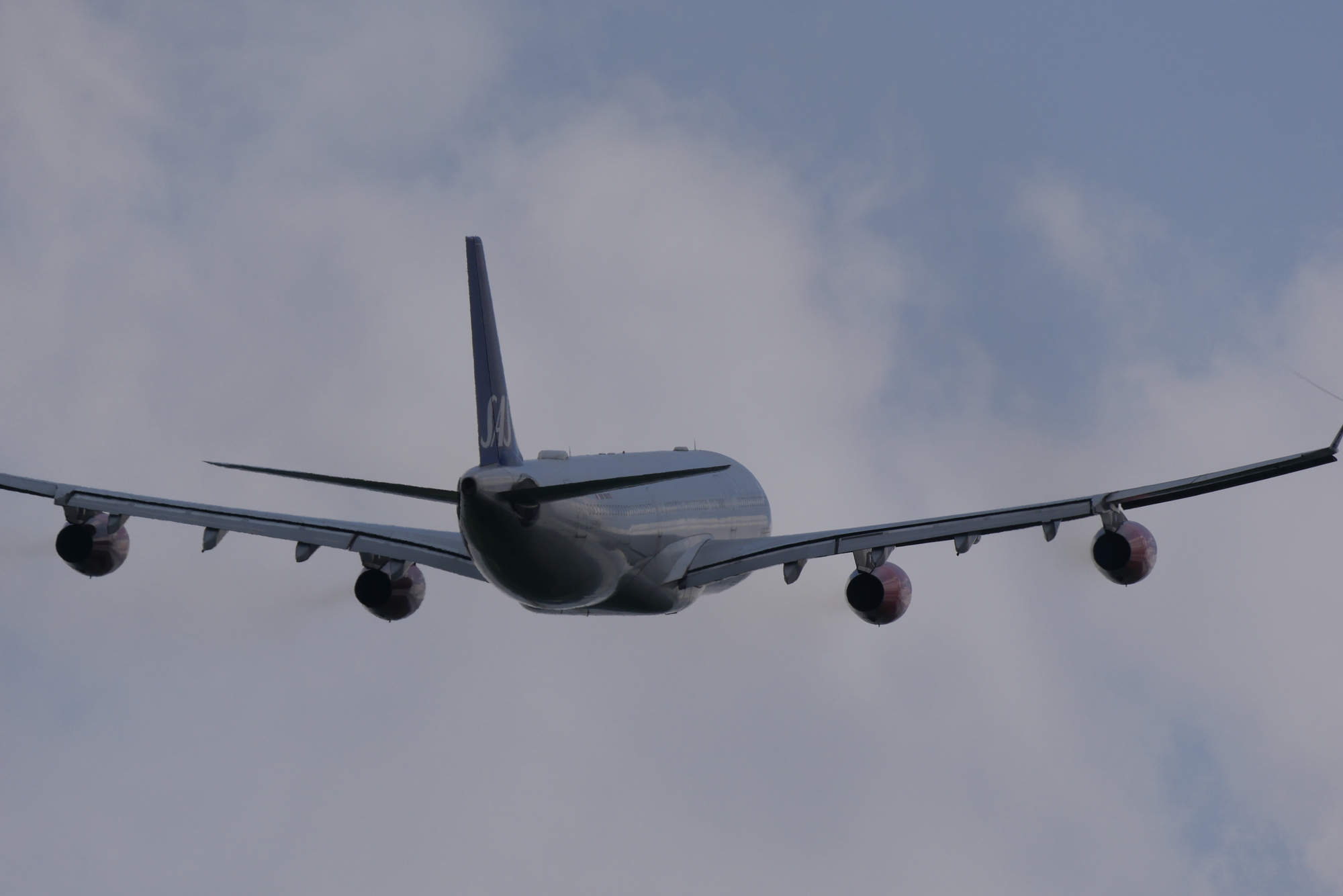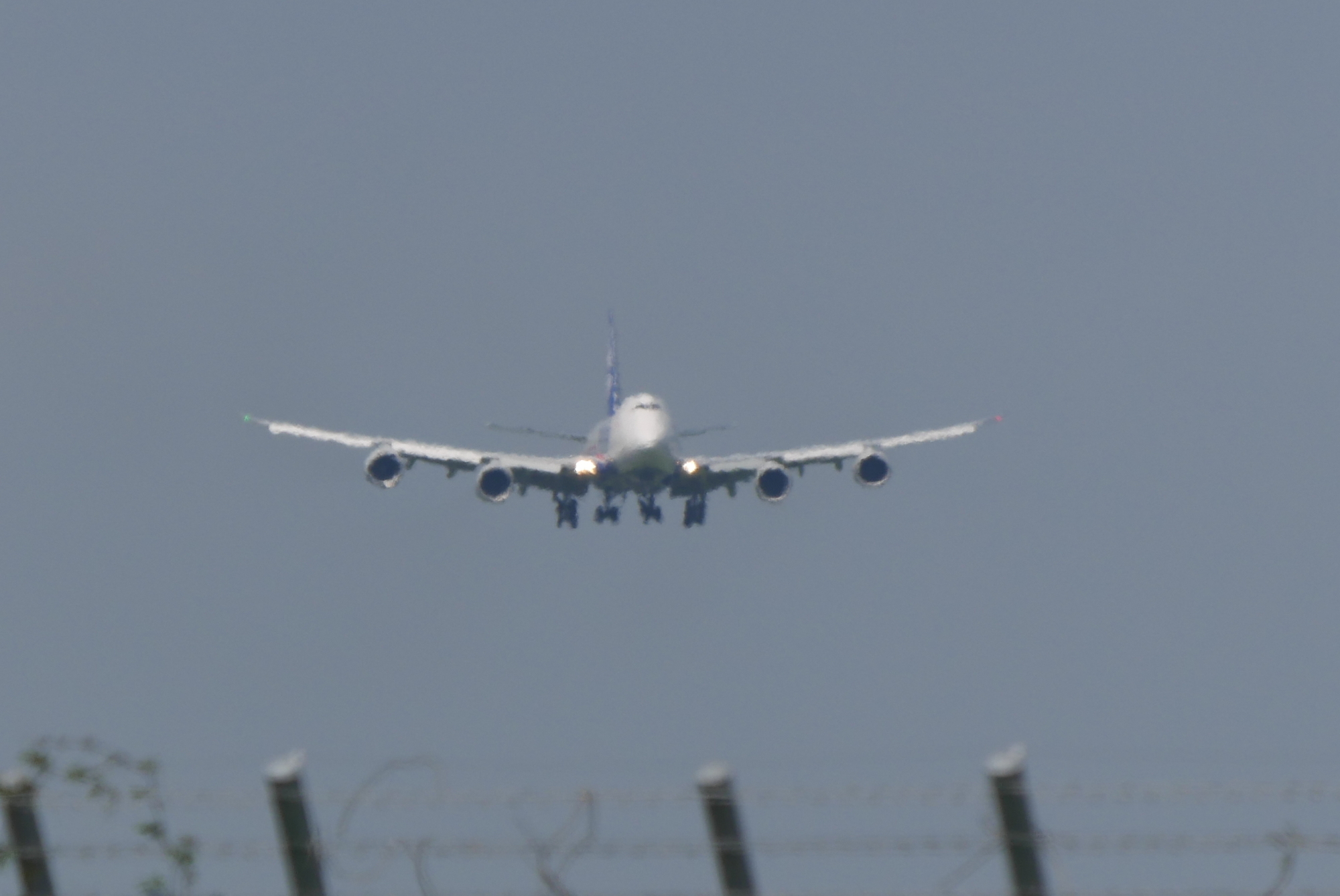 滑走路運用が逆になり、降りてきた747。換算1200mmの実力です。
