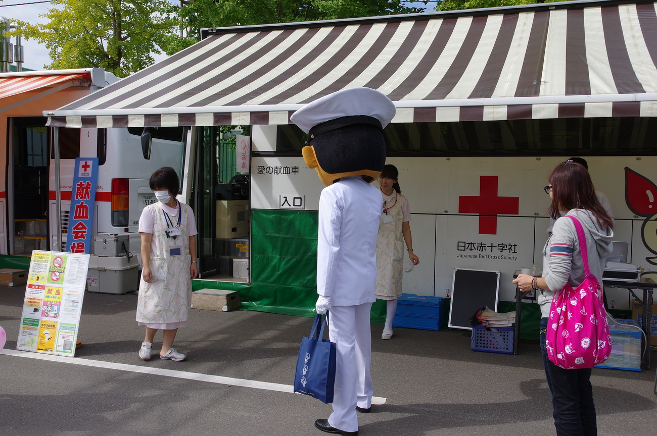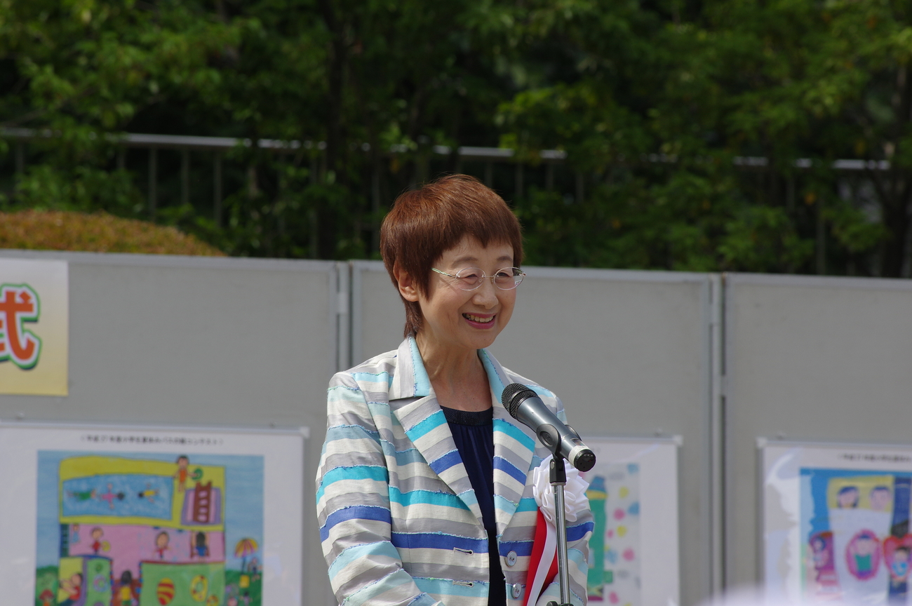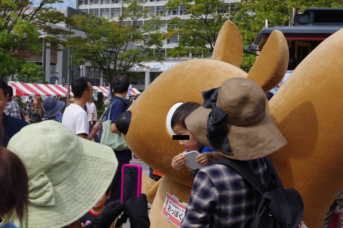 市長もやってきてイラストコンテスト授賞式。マスコットも子供に大人気。