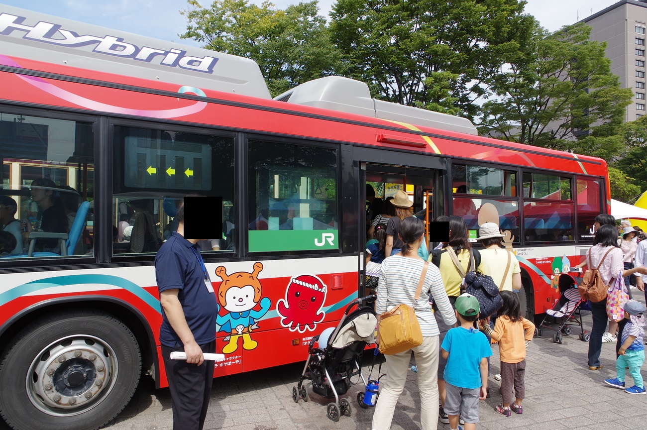 あと、ちびっこ制服? に親子連れ多数。バスってまだまだ人気なんですねぇ……(業界は人材不足にあえいでますが)
