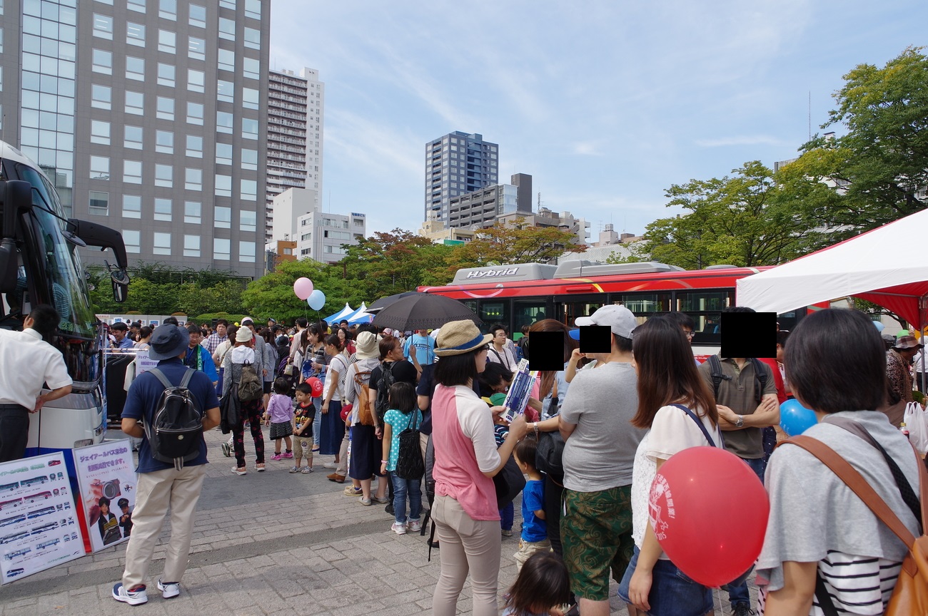 勾当台公園には南から入ったが、ずいぶん人が並んでるなーと思ったらJRバスさんがバスコレとやらを販売中で、ポストカードとペーパークラフトに人が殺到である。