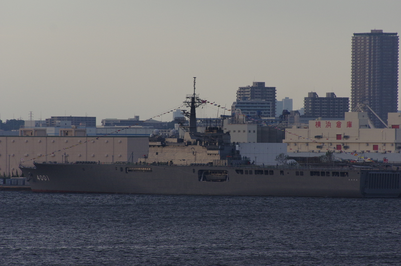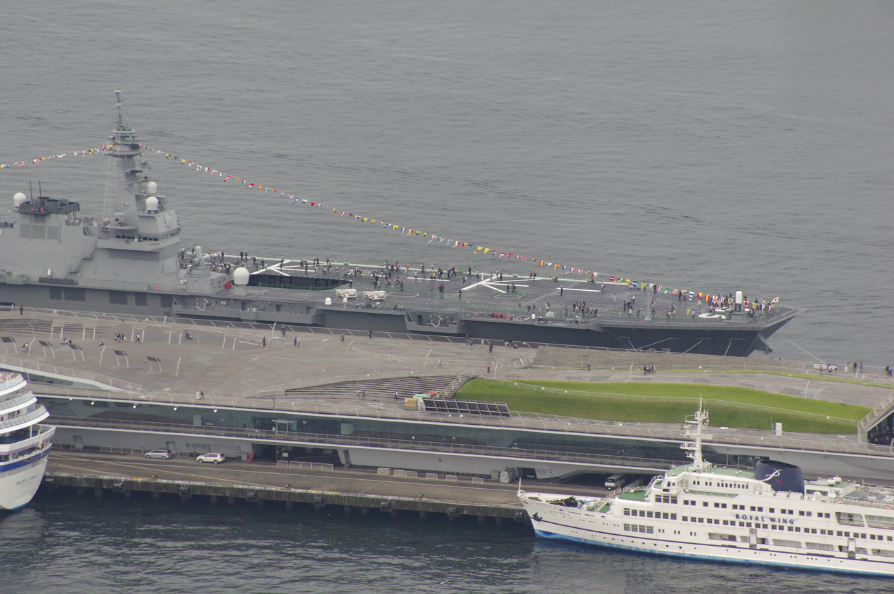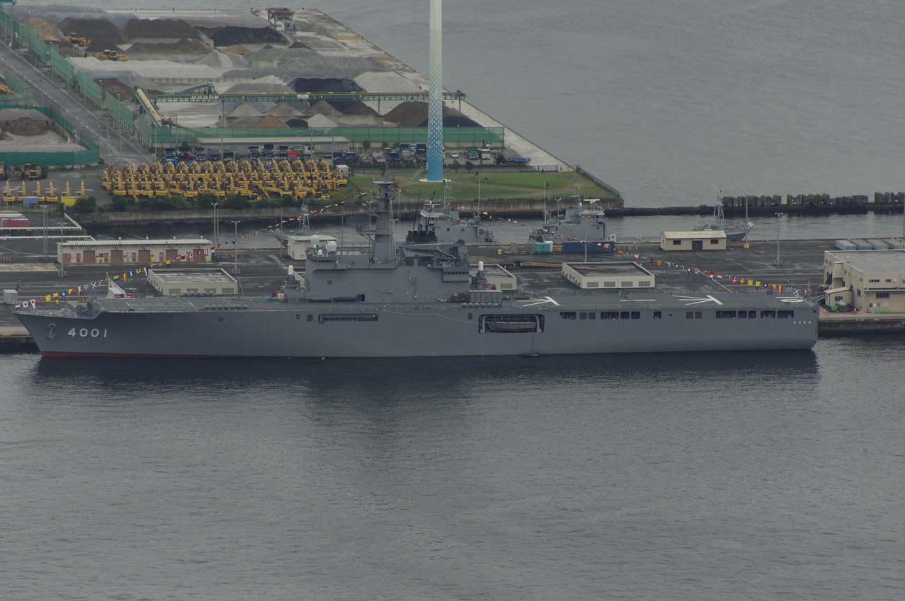普段は居るだけで話題になる海保のしきしま級も、大量の大型艦艇のせいでそんなに目立たない。しきしまとおおすみが近くに居るだけでもすごいんですが、振り返ればいずもが居るのでなんか色々台無し。もったいない(やっぱりしきしまもボロくなってきてますね)