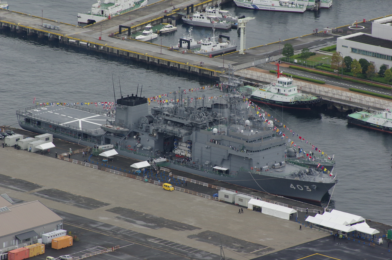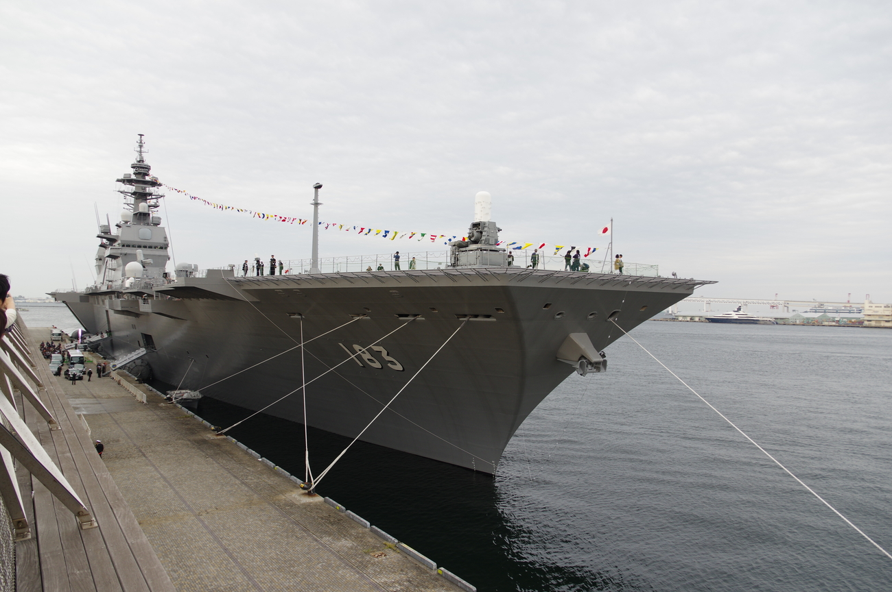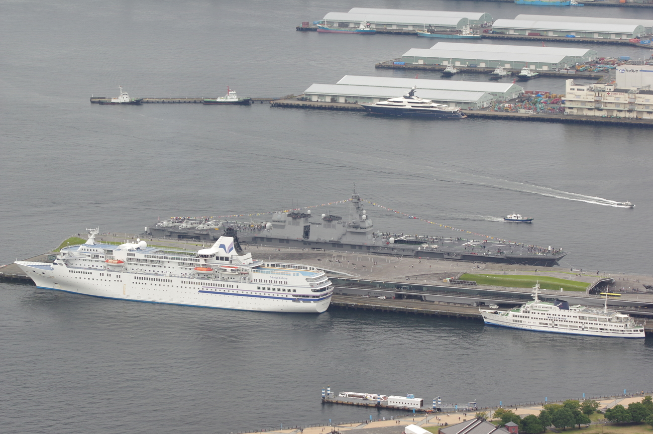 普段は居るだけで話題になる海保のしきしま級も、大量の大型艦艇のせいでそんなに目立たない。しきしまとおおすみが近くに居るだけでもすごいんですが、振り返ればいずもが居るのでなんか色々台無し。もったいない(やっぱりしきしまもボロくなってきてますね)