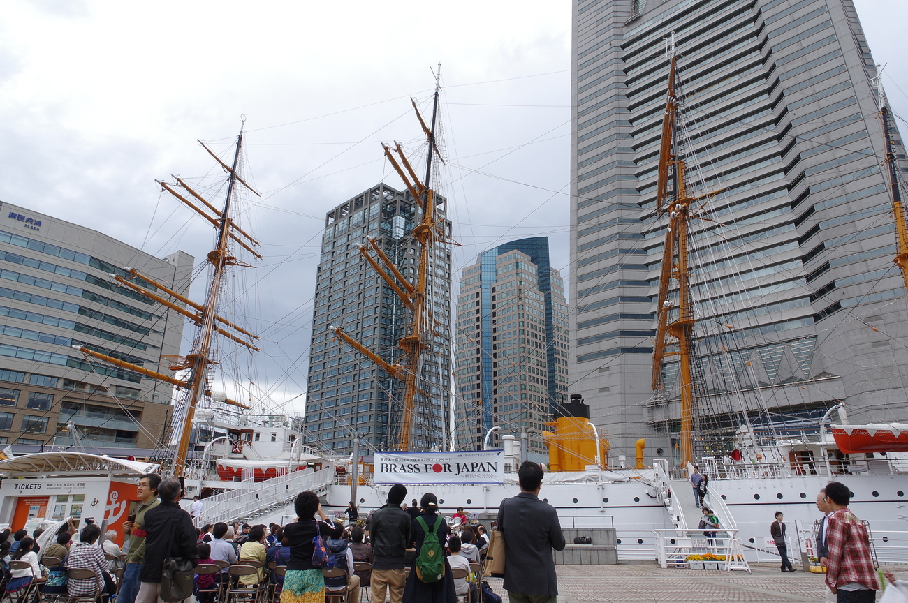 その後は大桟橋のいずもに向かってテクテク歩いてきます。ついでに日本丸にも寄っていきましたが、なんだかチャリティ音楽イベントがあり、楽しんで聞いてました。