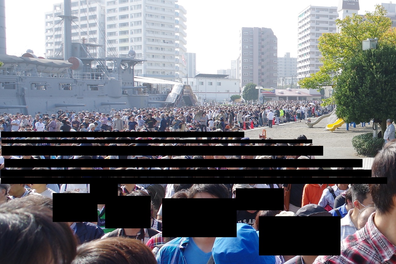 そしてまさかの8時半頃には三笠公園~横須賀駅まで人の列がgggggggg 観艦式でミリオタはほとんど居なくなったからレーガン公開したのに何でこんな人来るんでしょう!?(宮城県から前泊で新幹線で来た自分たちも含めて)