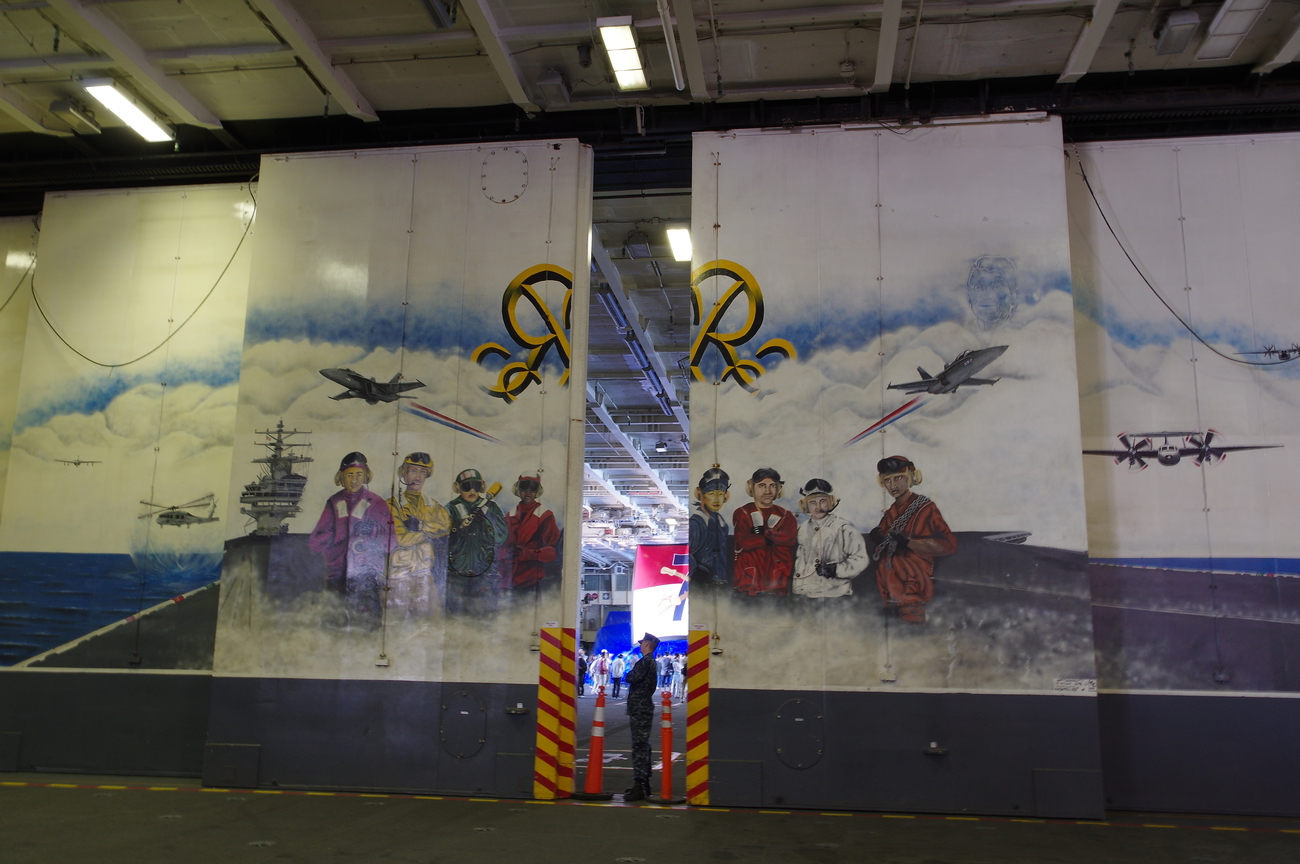 米軍公式では艦これの赤城さんがカタパルトに居たようですが、自分たちが乗艦したときはチビホーネットくんでした。