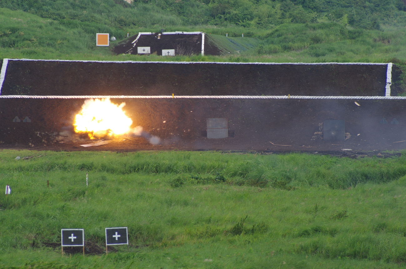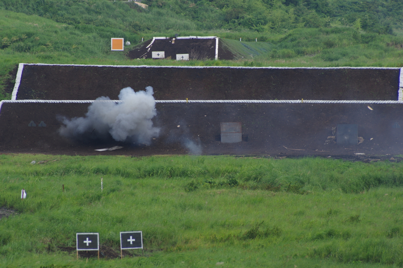 朝の演習場はちょい曇り。ただ朝の点検射でバシバシぶっぱなしてたので耳栓を早々に使用しました。