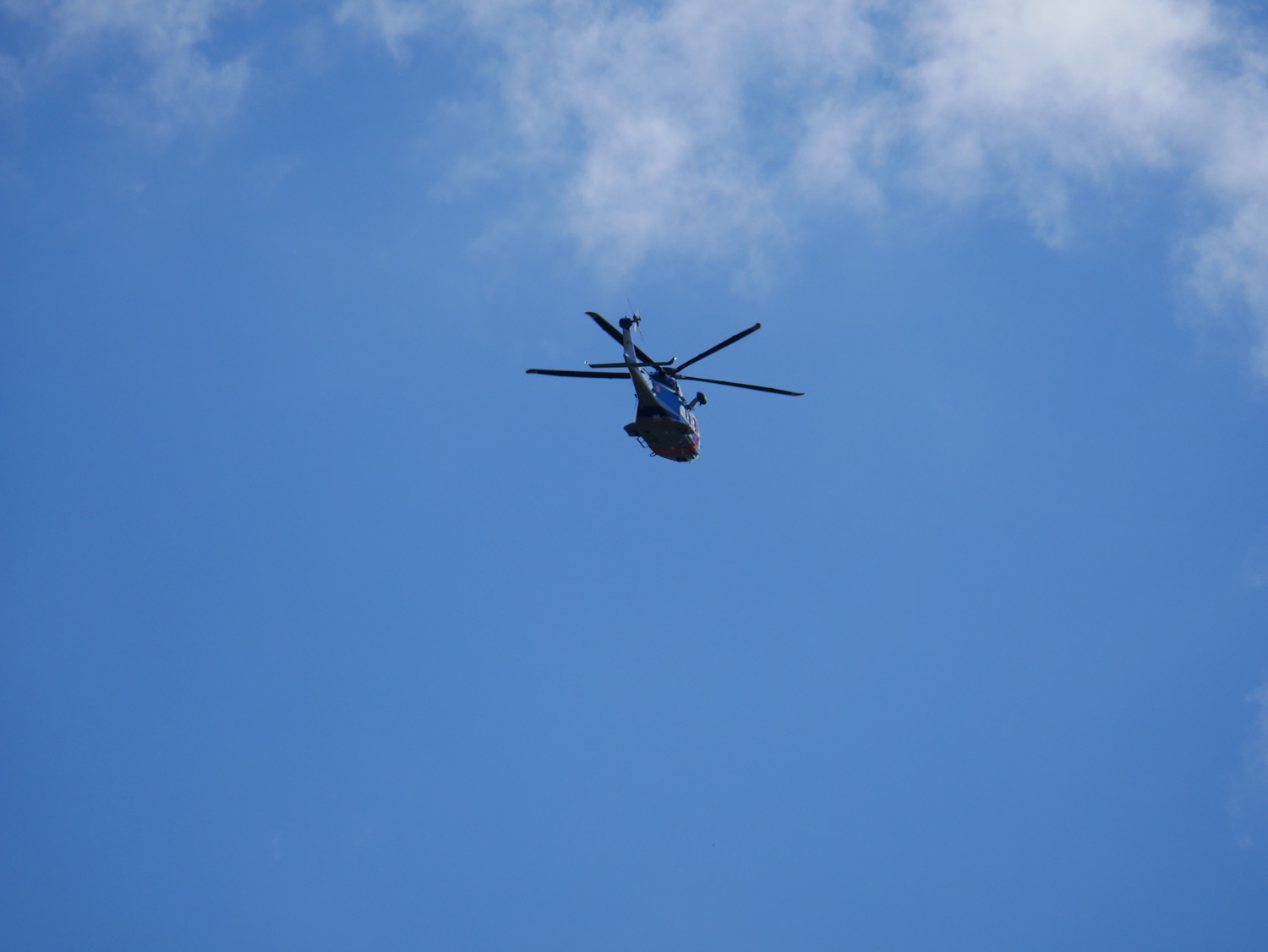 修理中?なヘリと記念撮影。やっぱり不審者である。