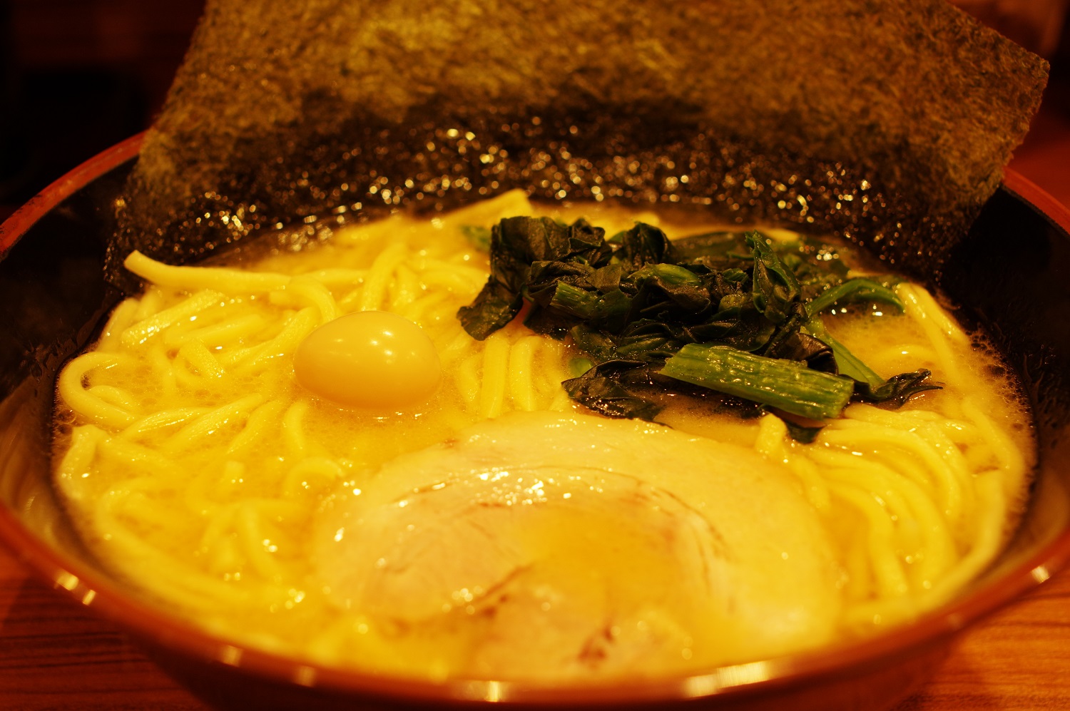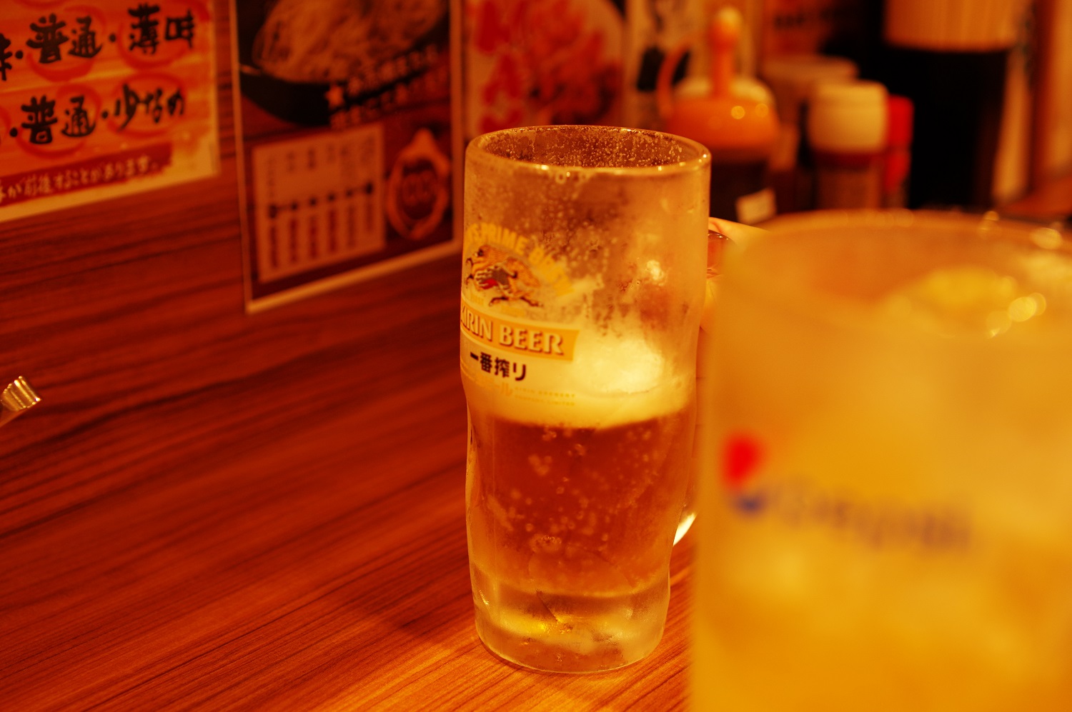 近くの家系ラーメン屋で乾杯です。