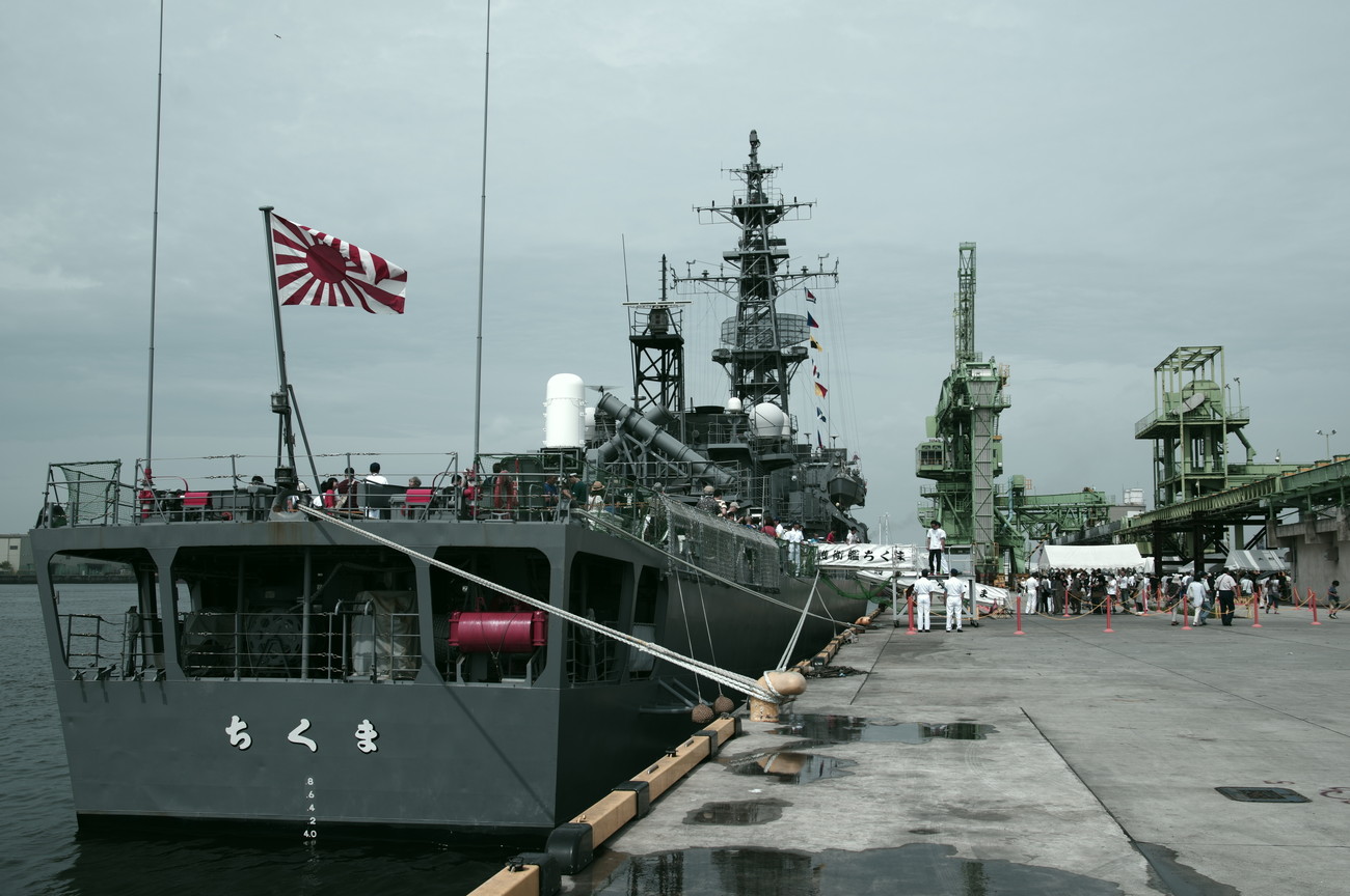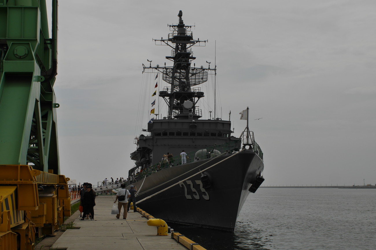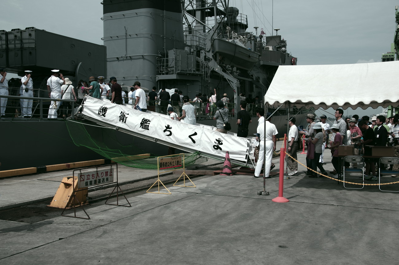 本日も行われています護衛官ちくま の一般公開。艦内には入れませんが、船の上に乗せてもらって装備をマジマジと見れます。