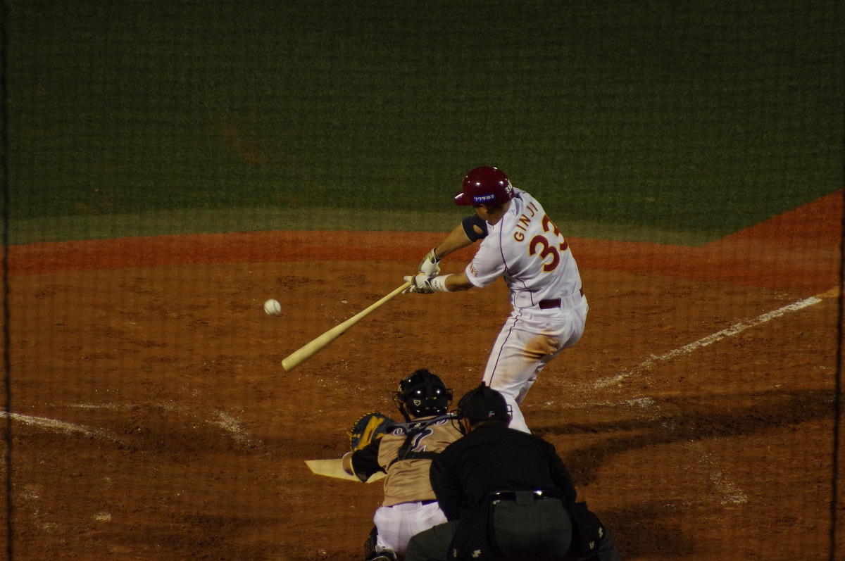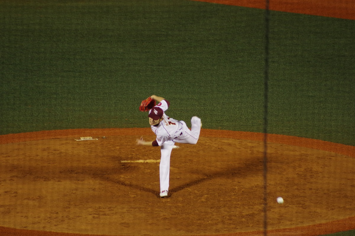 風邪ひく前に60-250mmと1.4×テレコンを片手に野球場へ。たまには仕事帰りに野球見たっていいじゃないですか(お酒飲まないのでたこ焼きもきゅもきゅ)
