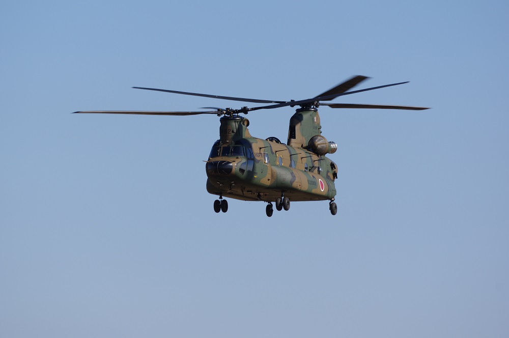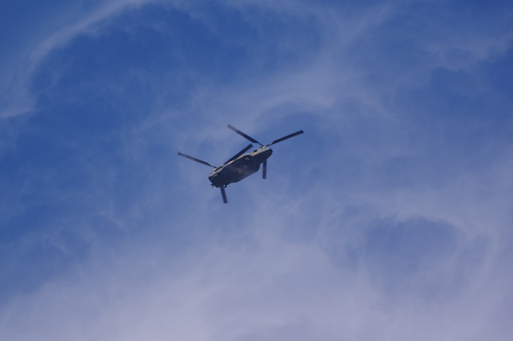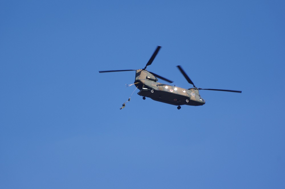 ただ、奥から演習場を横切り、直前を駆け抜けるヘリを撮影するのであれば、広角側は50mm以上だと厳しいかも。