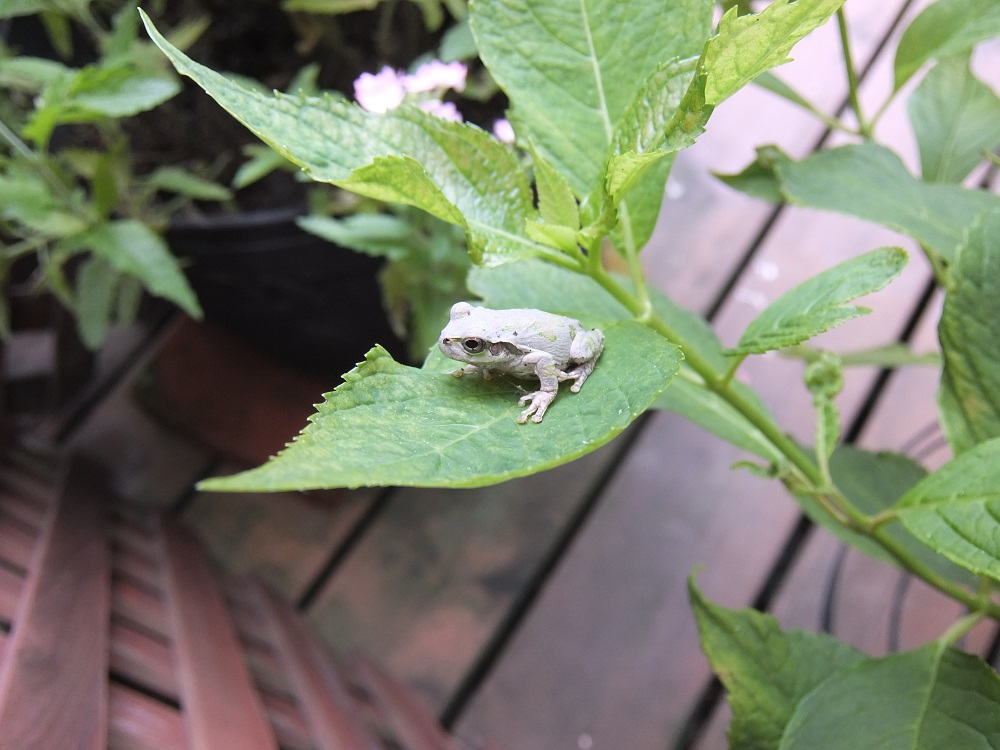 SPFスピーカ削ってたら頭に飛んできたカエルさん。木屑まみれになってしまったので水で軽く洗ってあげてそっと放してあげました。頑張って庭の害虫を駆除してくだされよ~