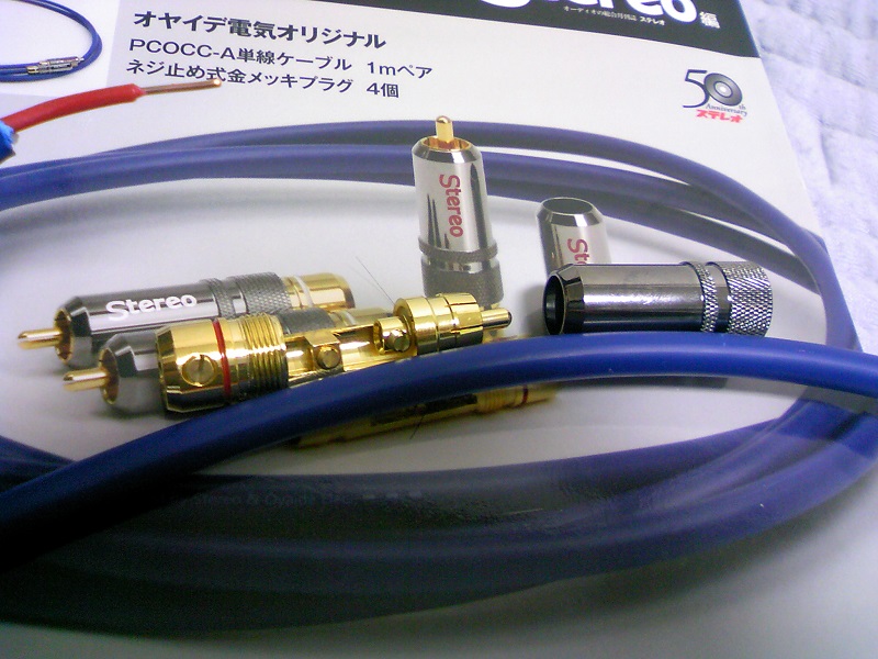 今回はケーブルがもったいないのですが、本来の半分の長さでRCAケーブルを作成します。アンプとその上に乗っかっているCDPとの接続に使うので、余ったケーブルはSPの内部配線に回します。