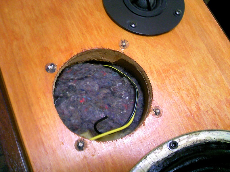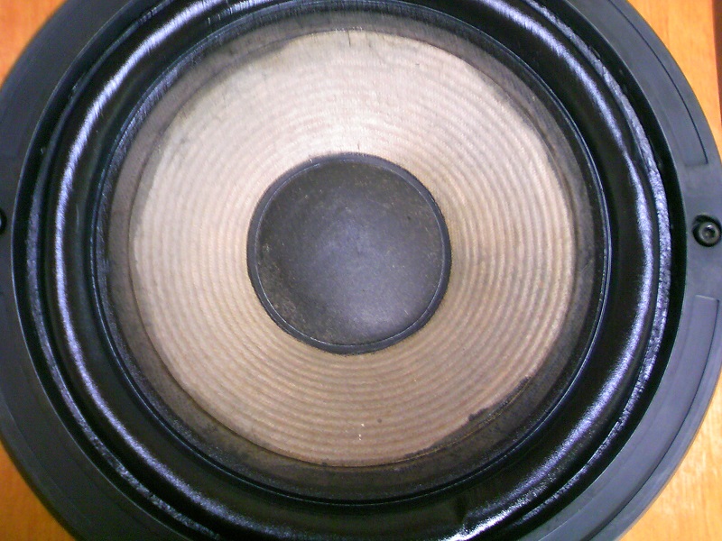 唯一の欠点が、フルレンジ部分がヘコんでいます。ボイスコイルのボビン?の茶色が見えているので、掃除機で引っ張るのはやめたほうが良さそうです。