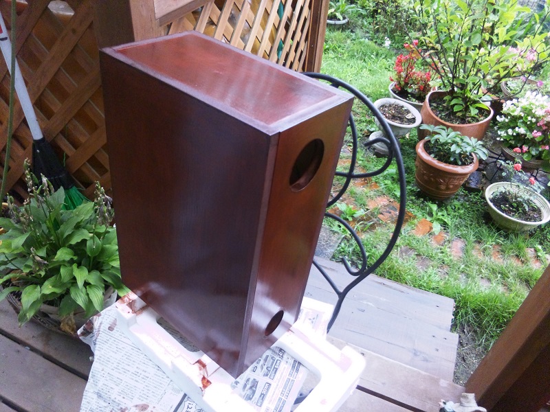 初FOSTEX製品(かんスピ除く)のキットのため、wktkしつつ父にまた前回の塗装時に余った塗料と追加で同じ色を購入しペタペタ塗っていきます、流石に手馴れてきた父、おそるべし。