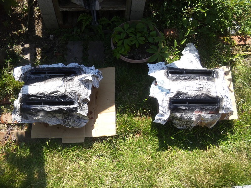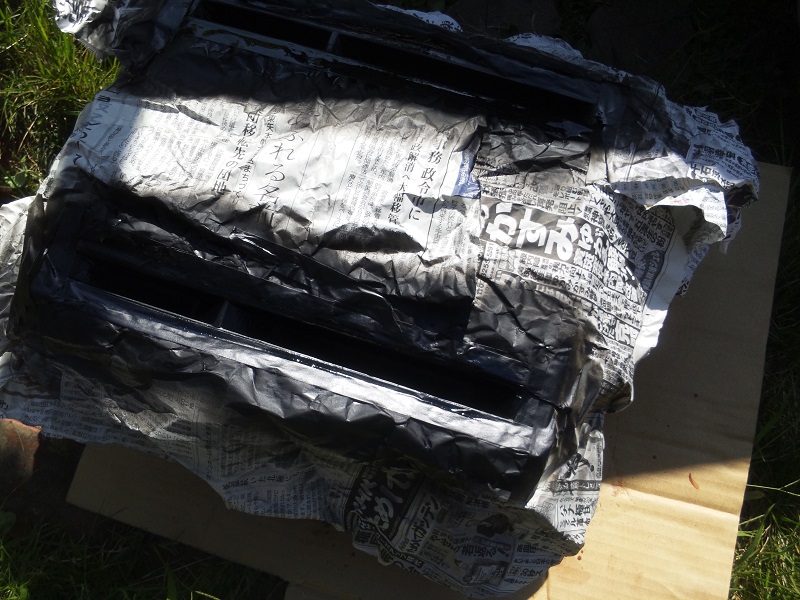 父にホーン部分を黒スプレーにて塗装し、木材の隙間をパテで埋めてもらい、綺麗に塗装してもらいます。