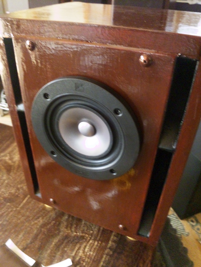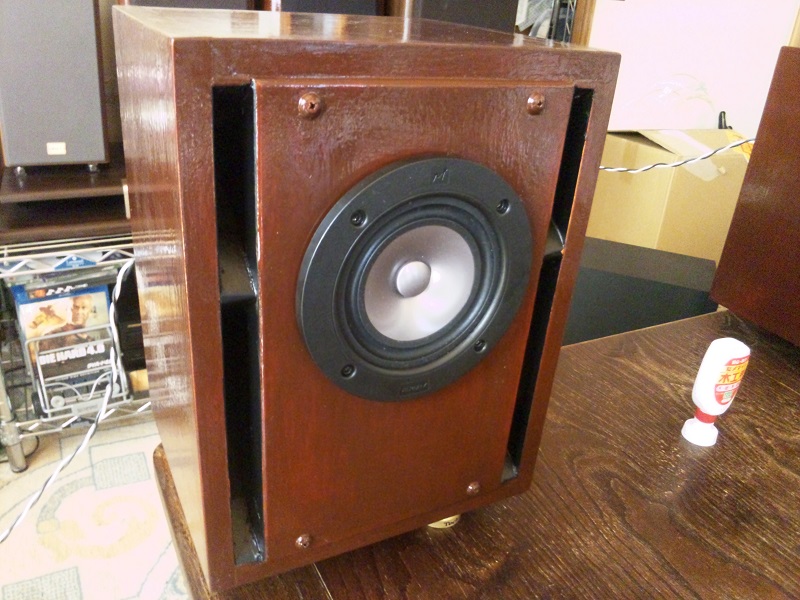 こちらが完成品です。実際に鳴らしてみると、初期に比べ音が締まり、低音も出るようになりました。中高音がフラットで低音が細かったGR-130Kですが、やはり箱の密閉性が問題だったようです(汗)