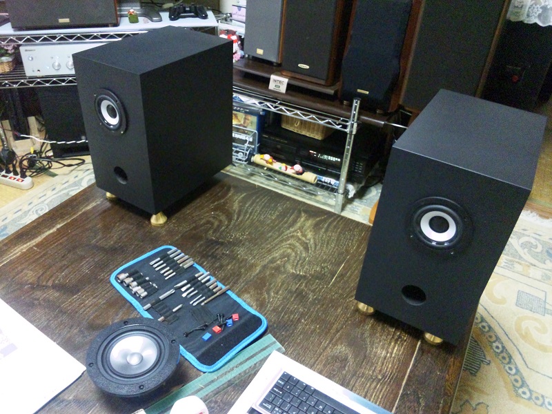 低予算……とは言い難いですが、自作する楽しさ、めんどくささ、手間ひま、全てをひっくるめて満足しています。うん、充分常用に耐える立派なSPです!