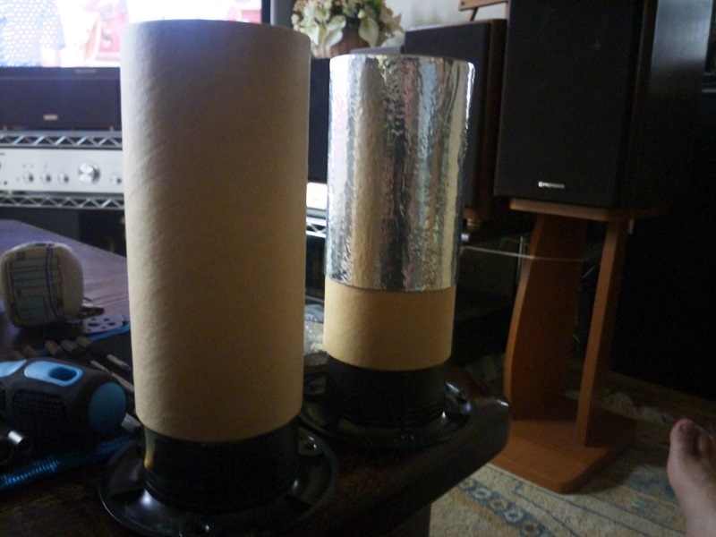 まずはボーボー響くダブダブ低音を締めるために、バスレフダクトの周りに鉛テープを巻きます。