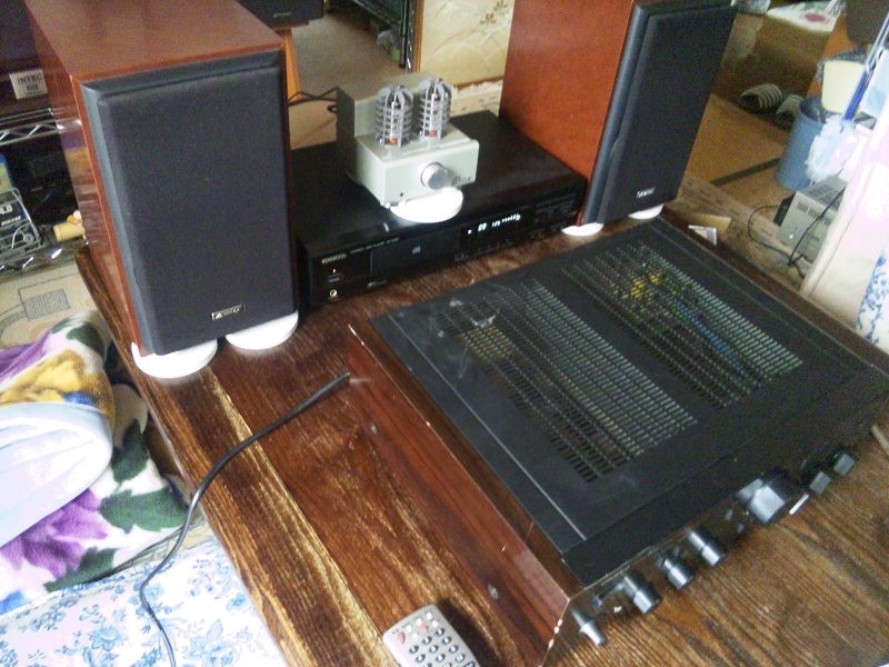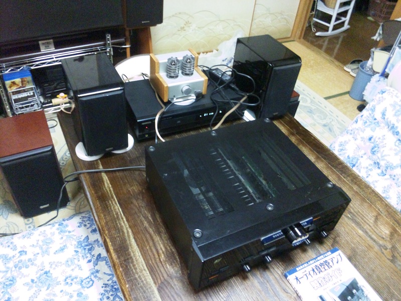 さて、ほぼメンテ済ということもあり、早速音楽を聴いてみましょう。真空管アンプの編成を机に置きっぱなしにしていたのでまずその編成で聞いてみることに。
