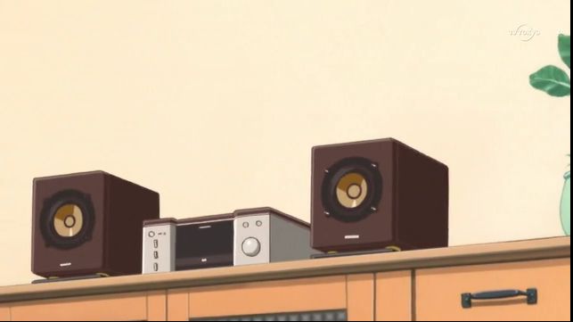 アニメ「ゆるゆり♪♪」の一シーン。背後に映っているミニコンポ、どう見てもJVCケンウッド「EX-AR3」です。アマゾンで54000円近く……ヴィヴァルディ聞いているので、まぁ、ウッドコーンのコンポとしてはセッティングOKというこだわり。