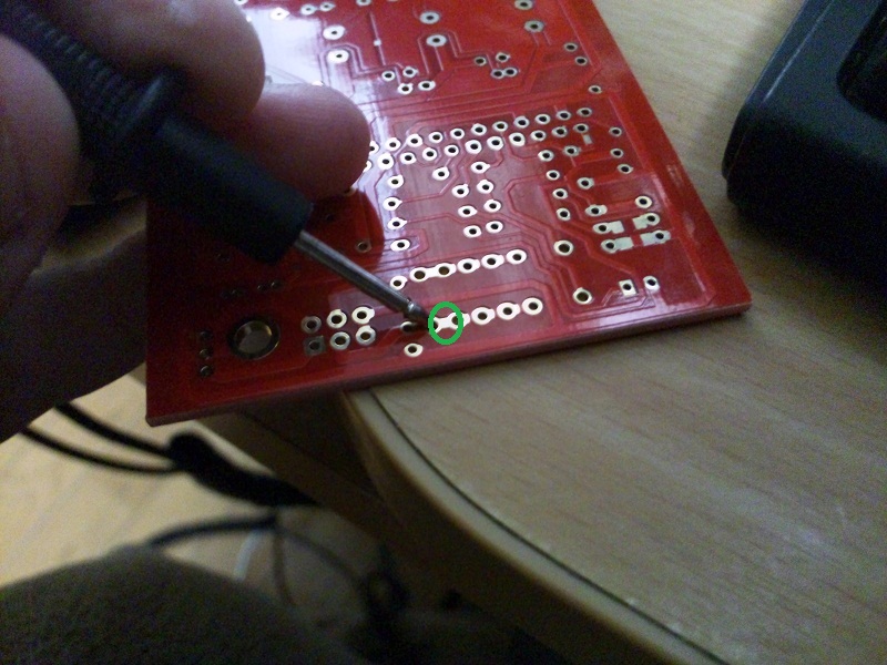 ①三端子レギュレータを使う場合のコンデンサの位置→耐圧10Vのちっこい電コンの配置場所が、今回は違います。