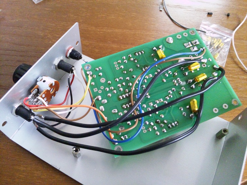 写真取ったあと、ひどいハンダ付けはやり直してケースに戻しってっと。エージング1時間してから試聴してみましょう。