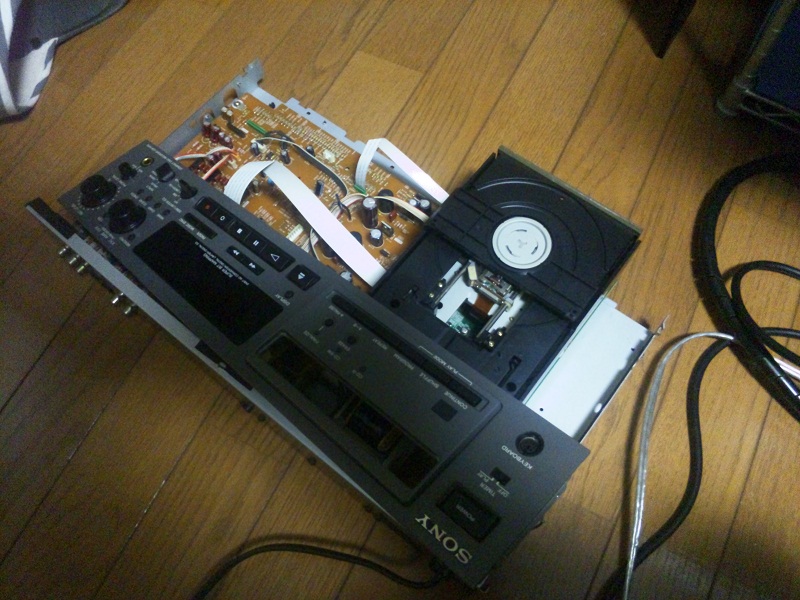 音質はかなり良かった記憶があるので、なんとかばらして交換してみましょう。このCDPを出す前に一台CDPいじってたのですが、焦げ臭くなり中破状態から大破したのでリベンジです。