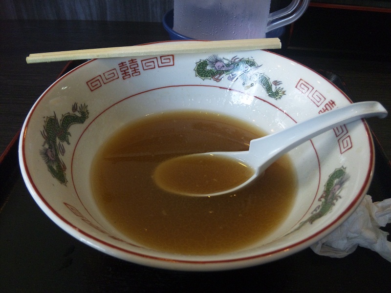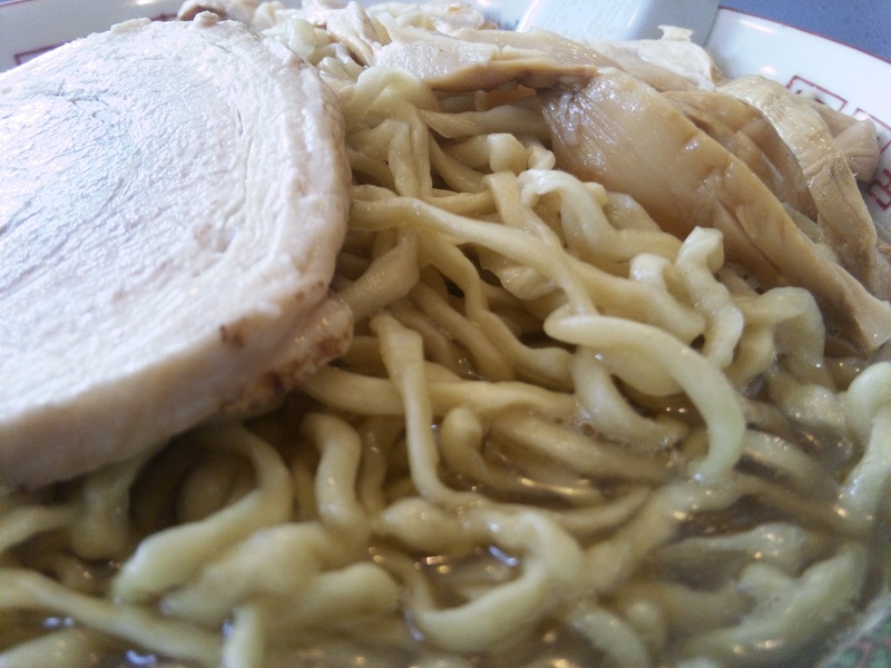 さて、食べてみると……うん、大盛り系の割にうまかです。魚介系で結構こってり目。麺のコシは見た目以上で、わかる人には山形の板そばを思い浮かべてもらえばいいかと。